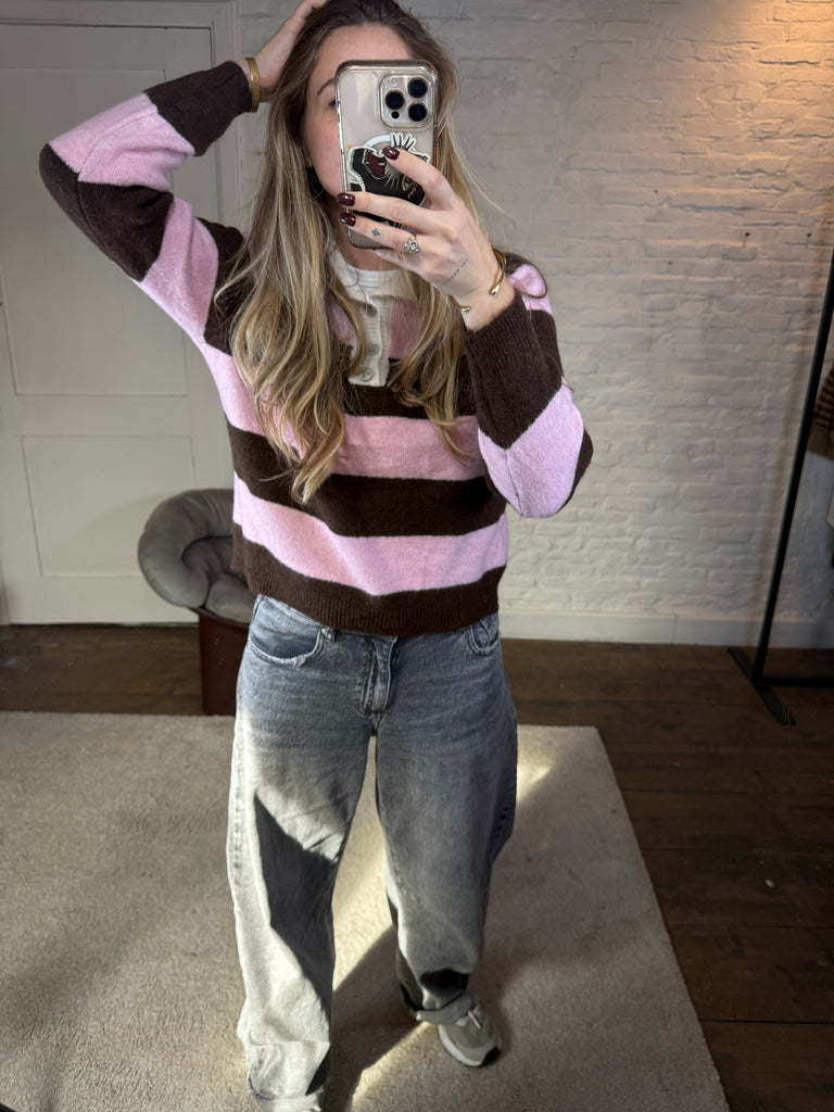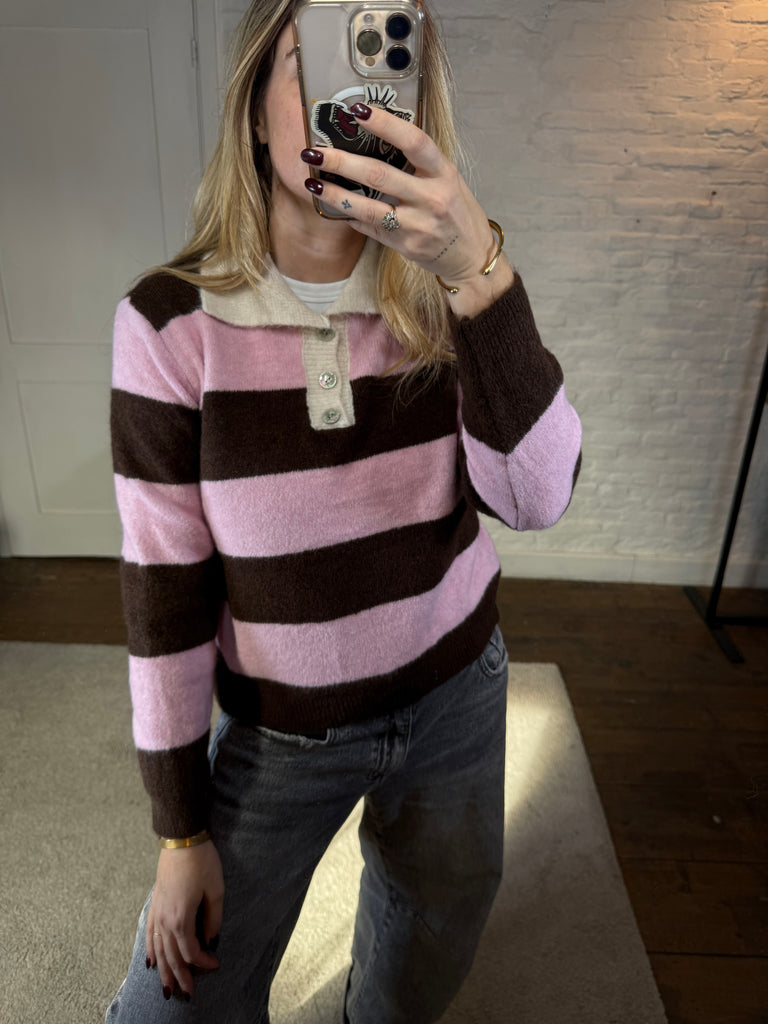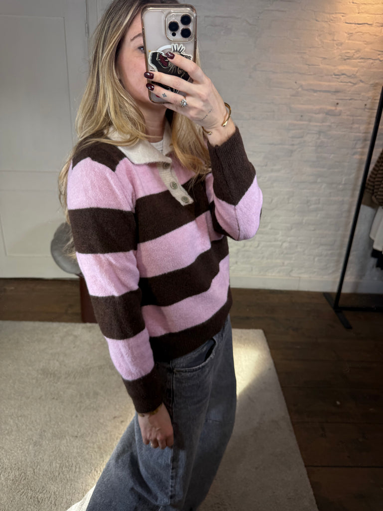 Belly polo pullover - roze/bruin