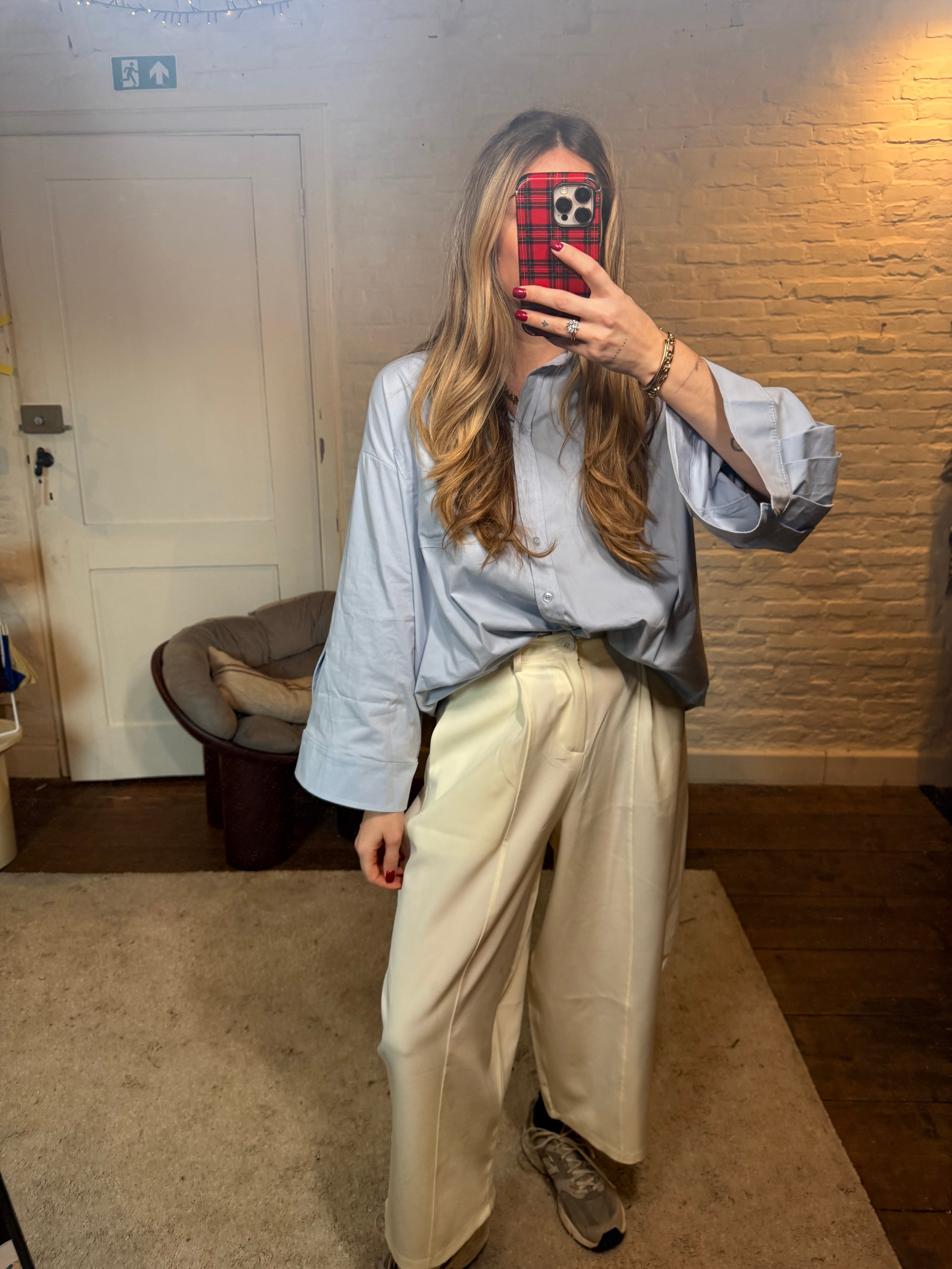 Dankzij het rekje in de rug zit hij extra comfortabel en past hij zich mooi aan de taille aan. Het model heeft een cropped/enkelhoge lengte, ideaal voor een trendy en luchtige look.