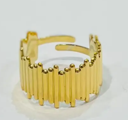 Roestvrijstalen ring bestaande uit meerdere fijne, dicht bij elkaar geplaatste verticale staven Materiaal: 316L roestvrijstalen sieraden gecertificeerd nikkelvrij, het behoudt zijn glans en originele kleur dankzij zijn anti-allergene en corrosiebestendige eigenschappen.