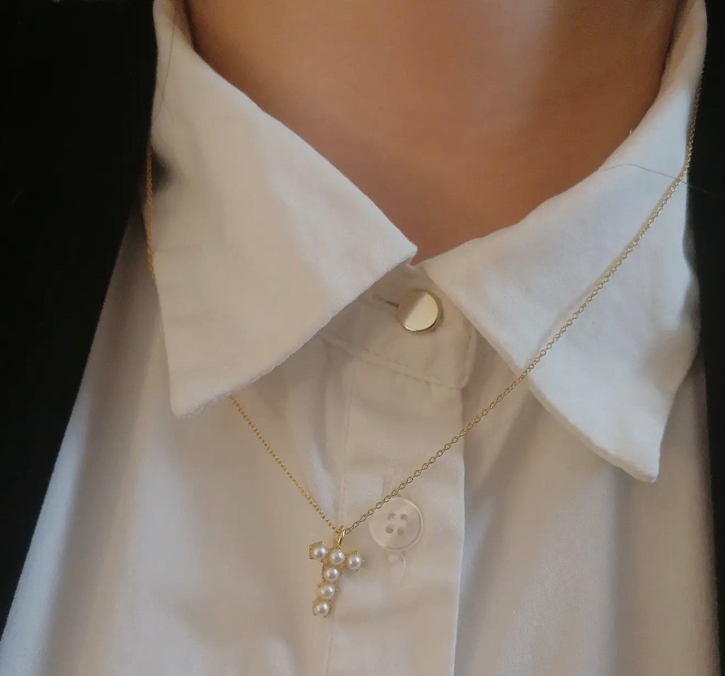 Verstelbare halsketting van goudstaal van 50 cm lang en een verlengstuk van 5 cm met een hanger van een beginletter met kralen Materiaal: gouden sieraden van roestvrij staal