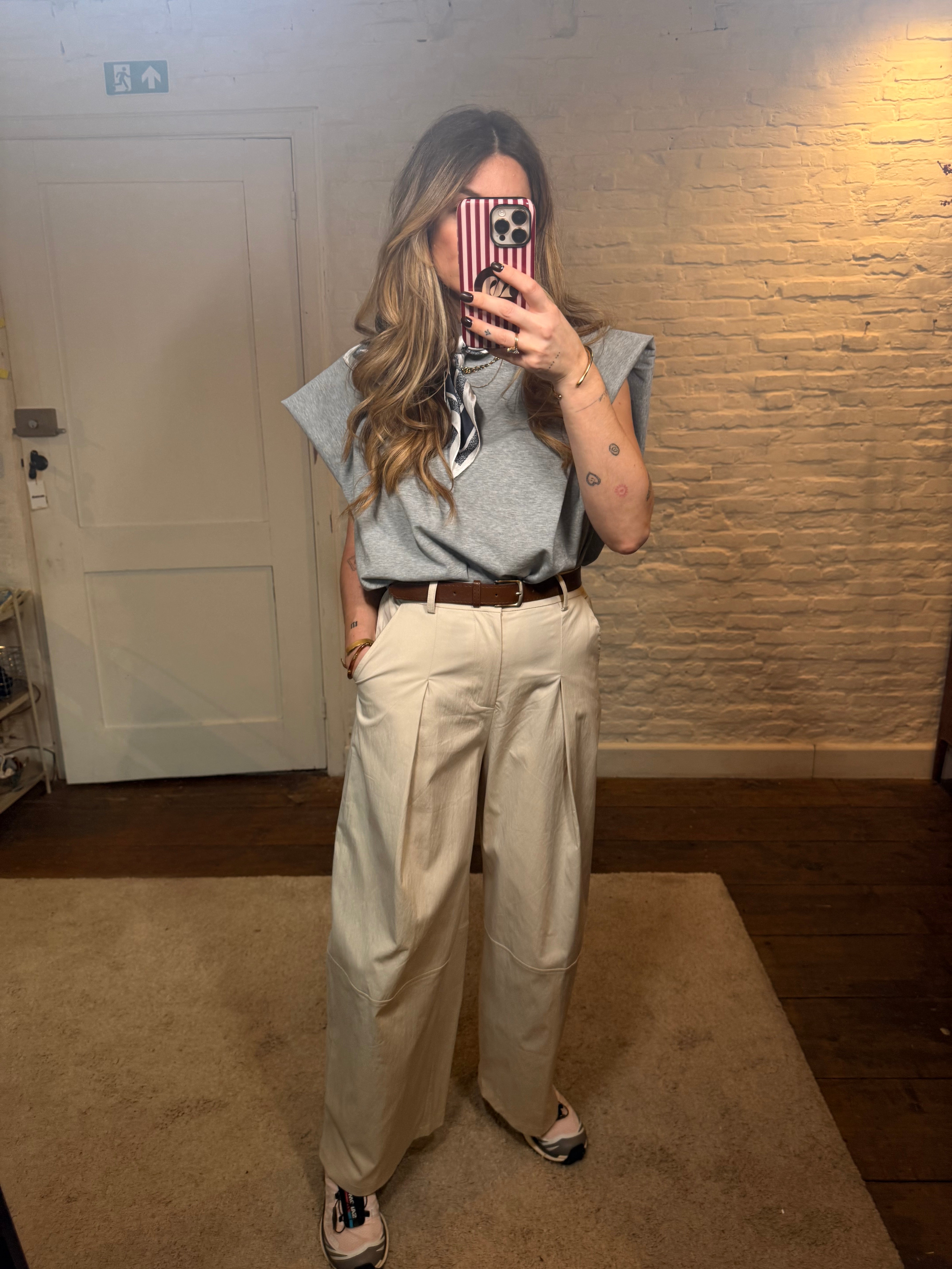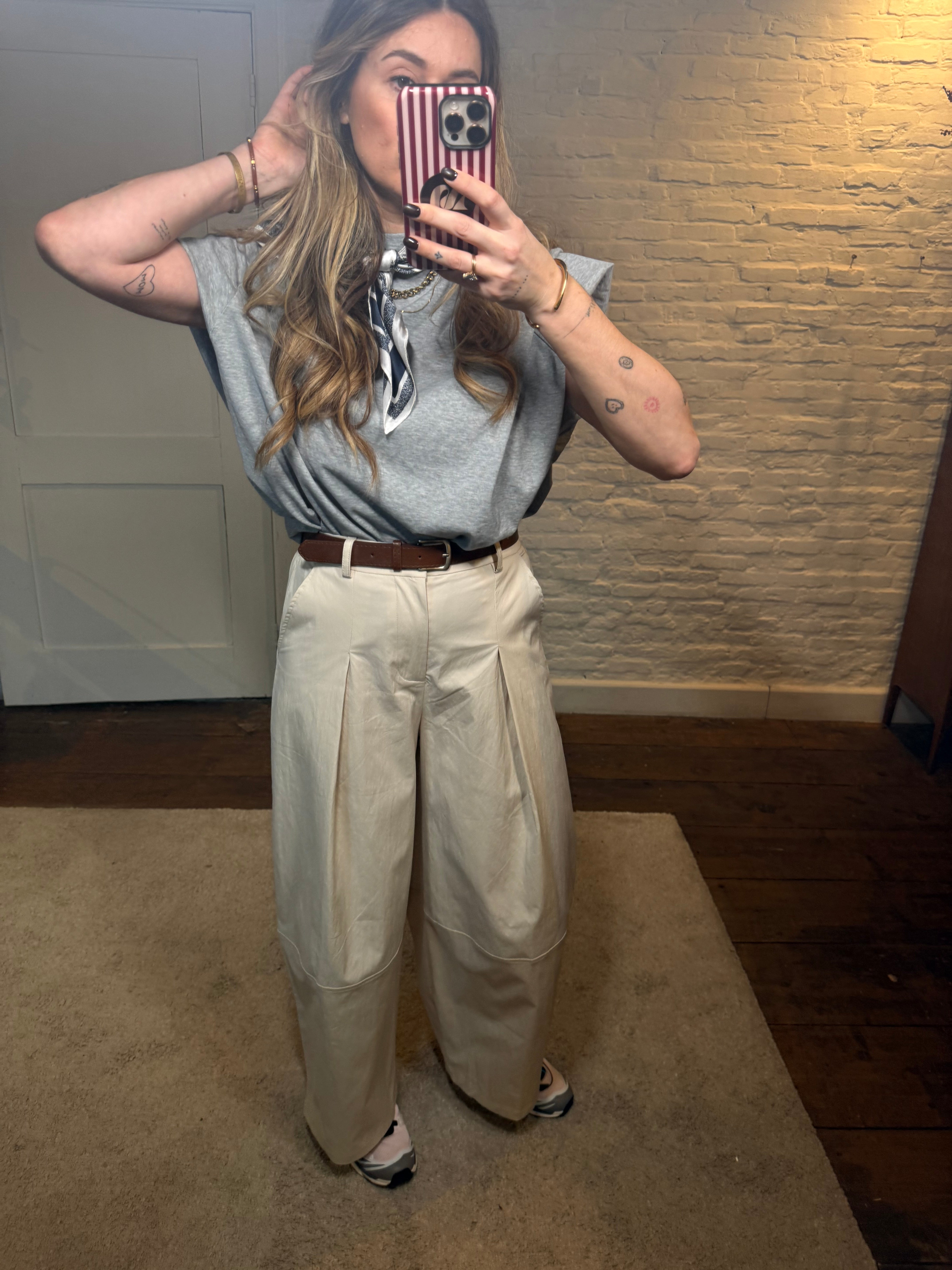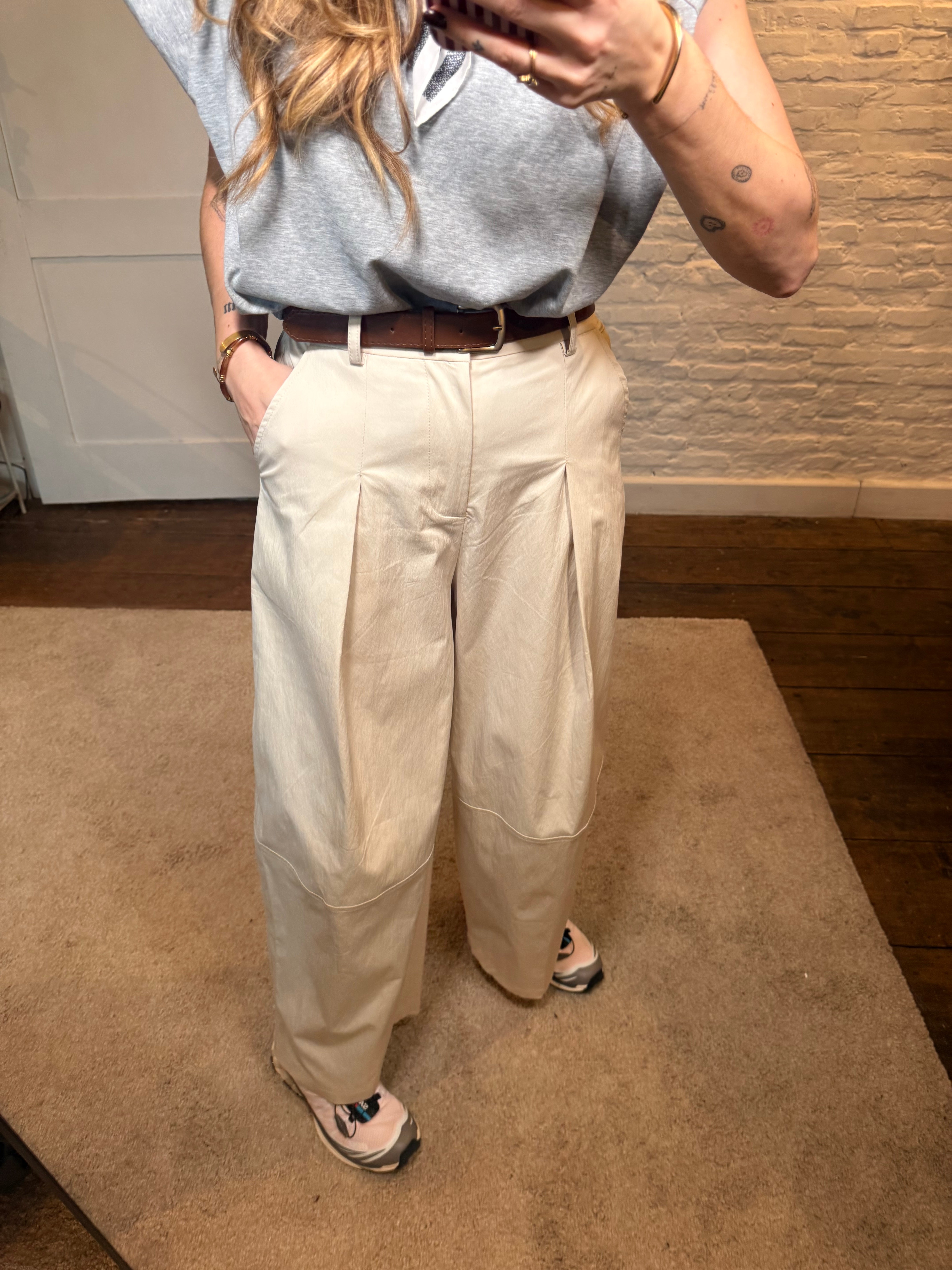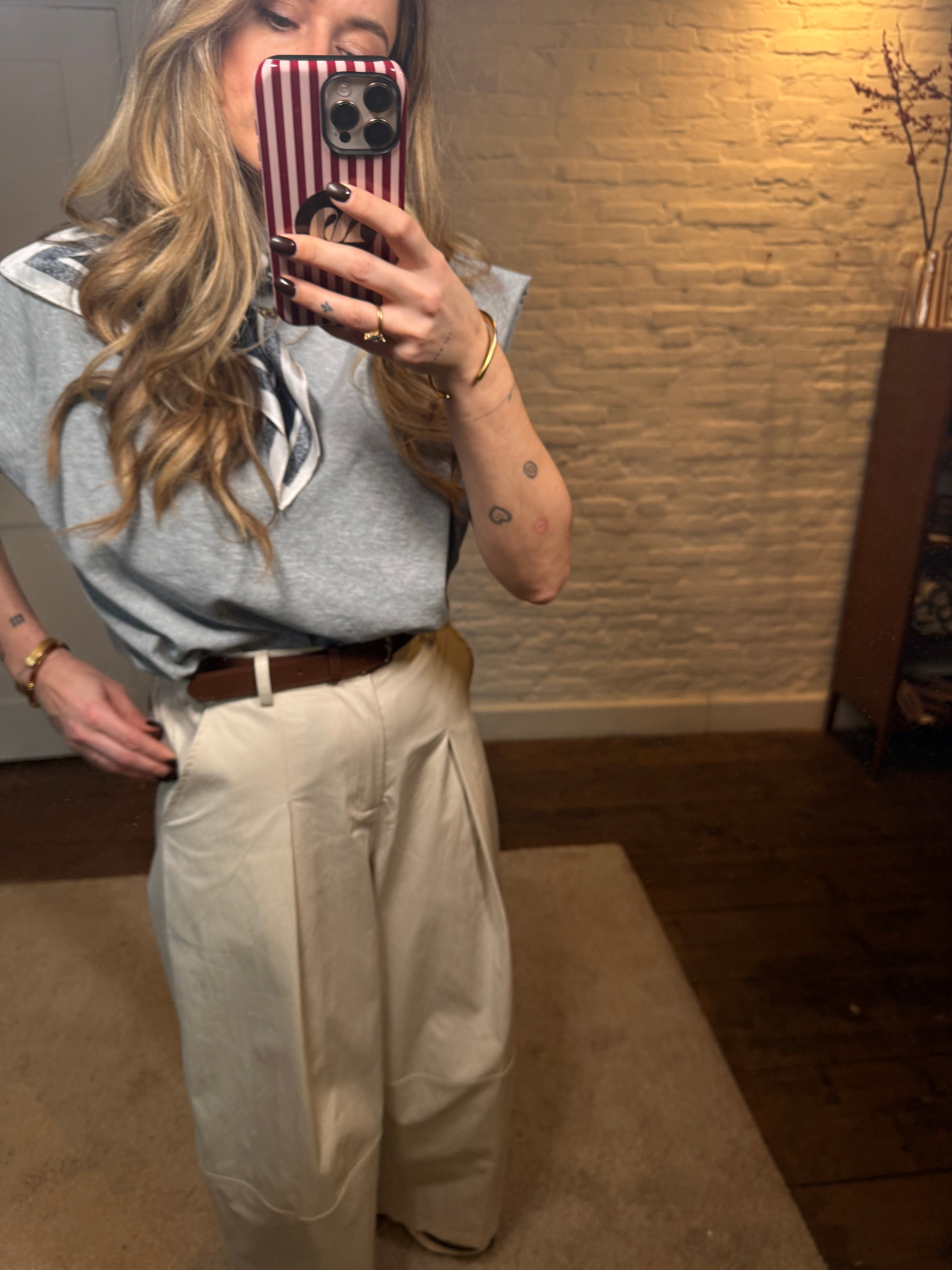 De broek komt met een bijpassende riem die de taille mooi accentueert en zorgt voor een elegante afwerking. Dankzij de lichte stretch zit hij comfortabel en volgt hij mooi je vormen.