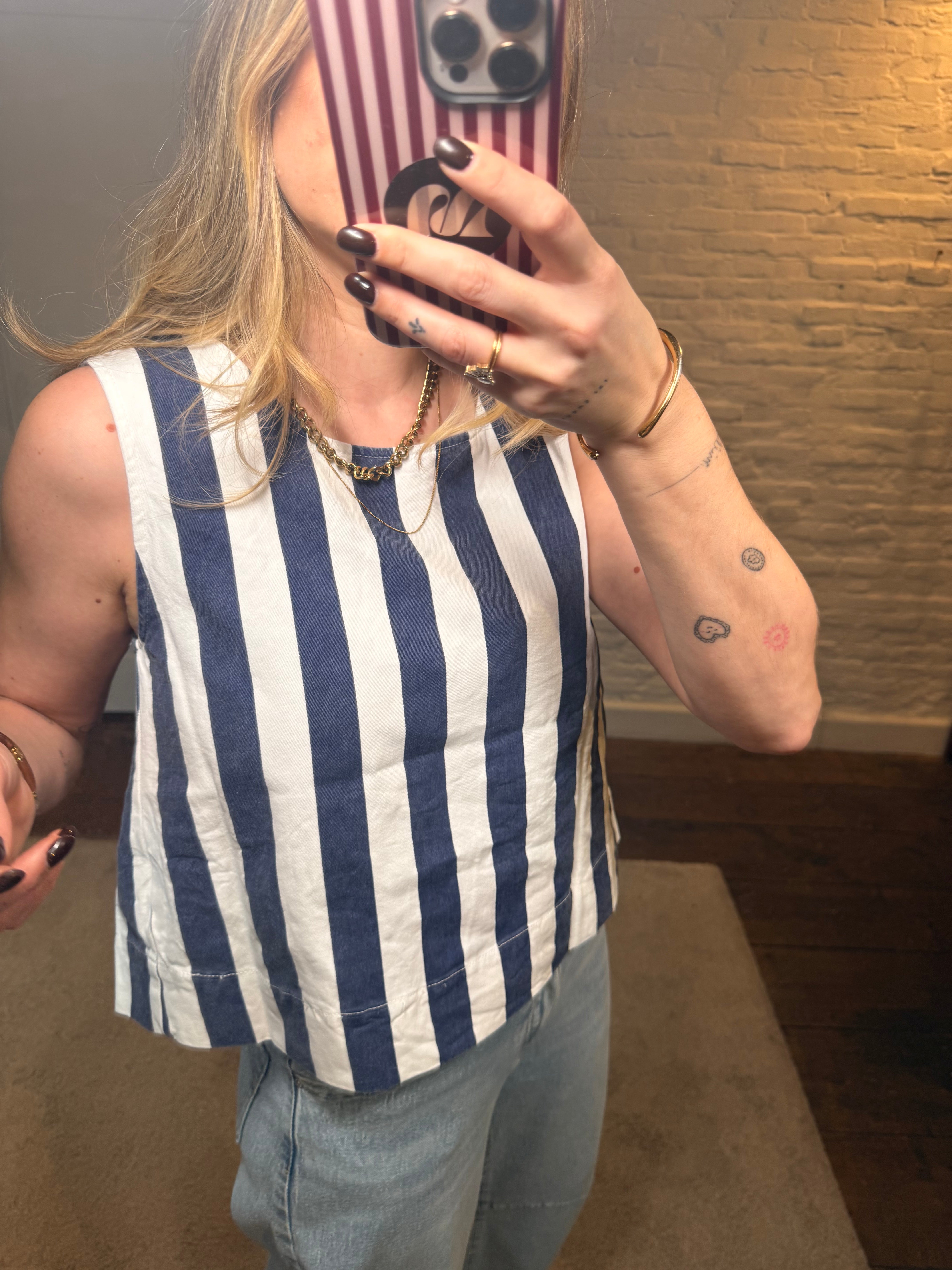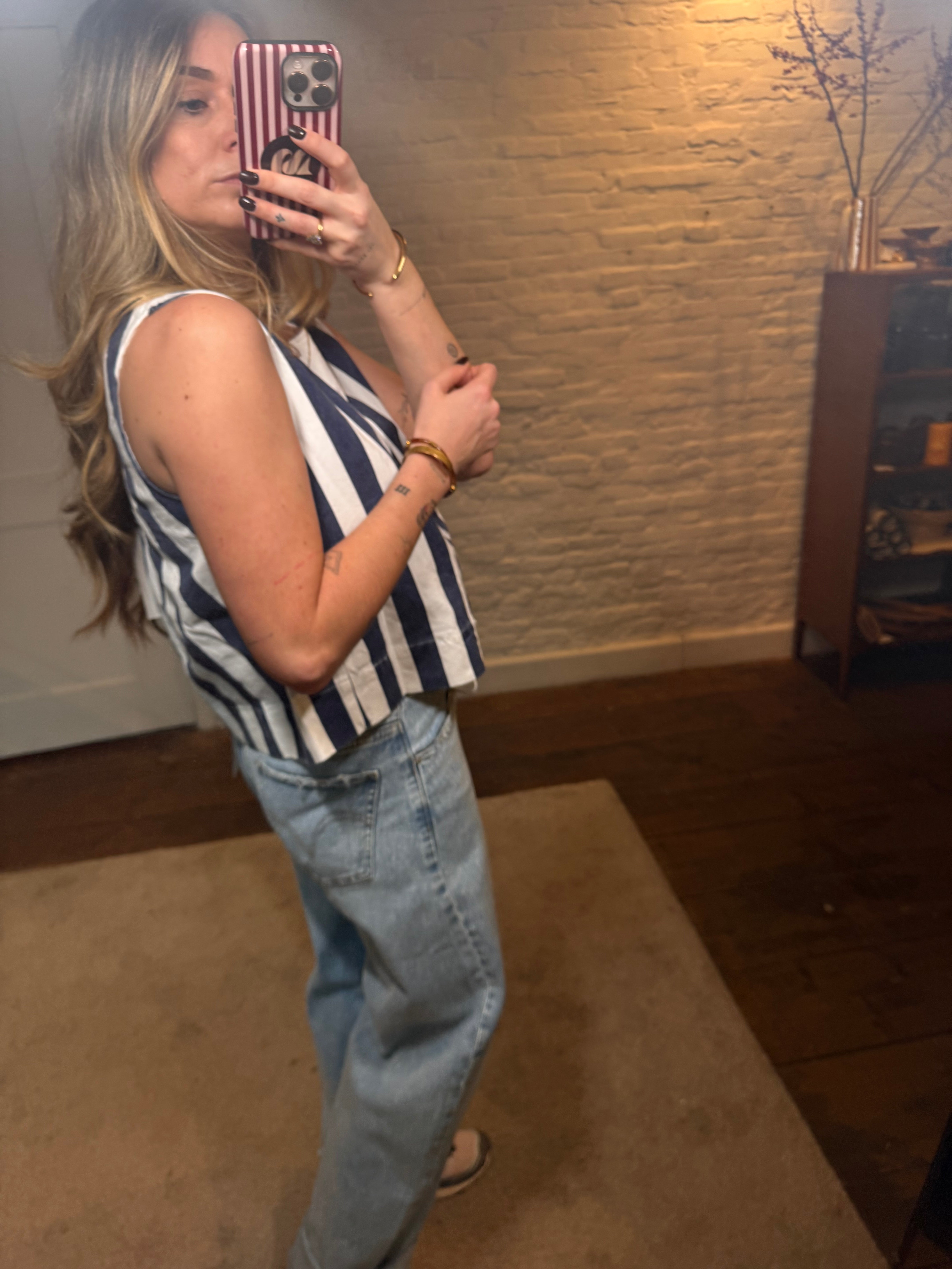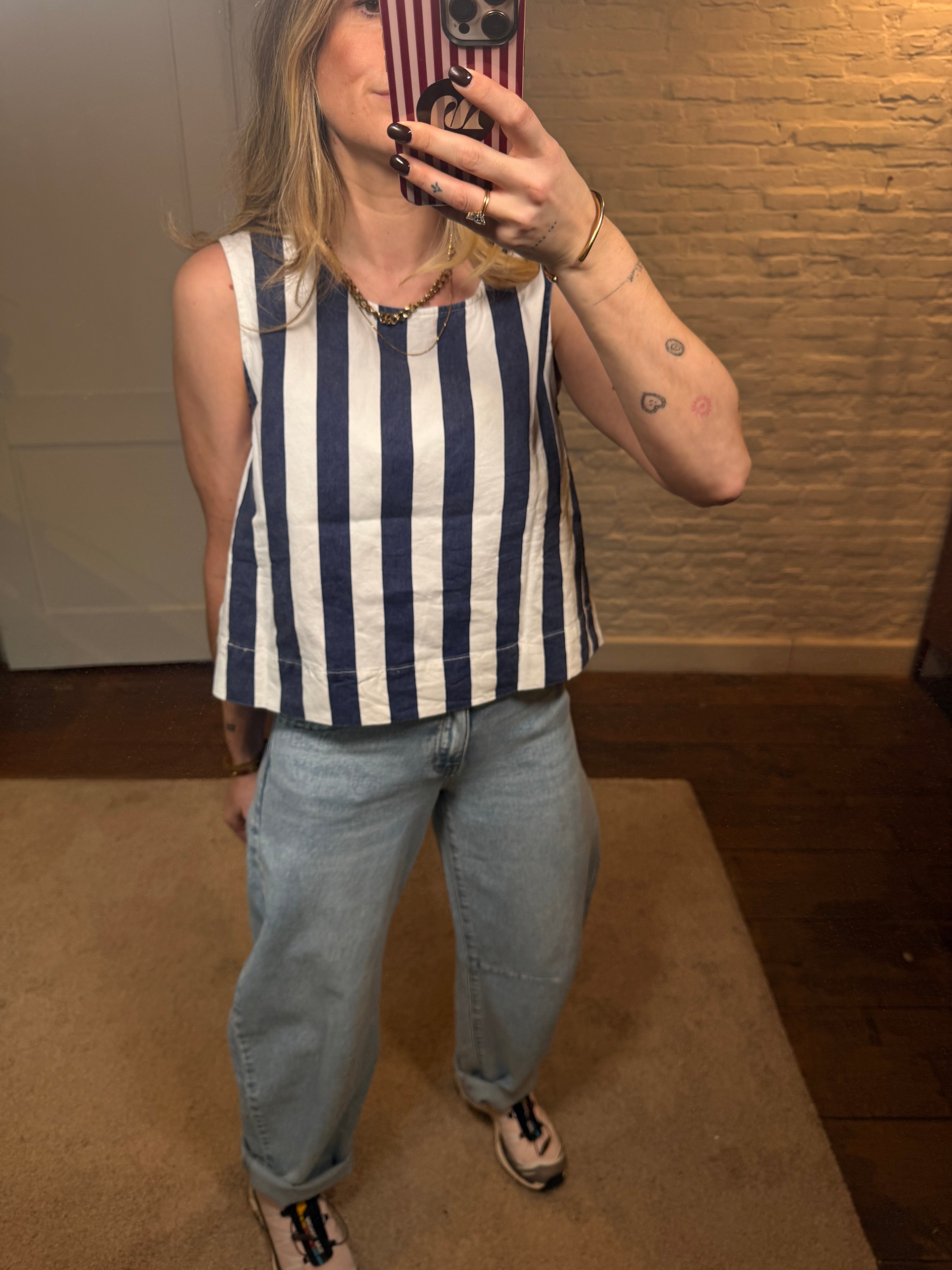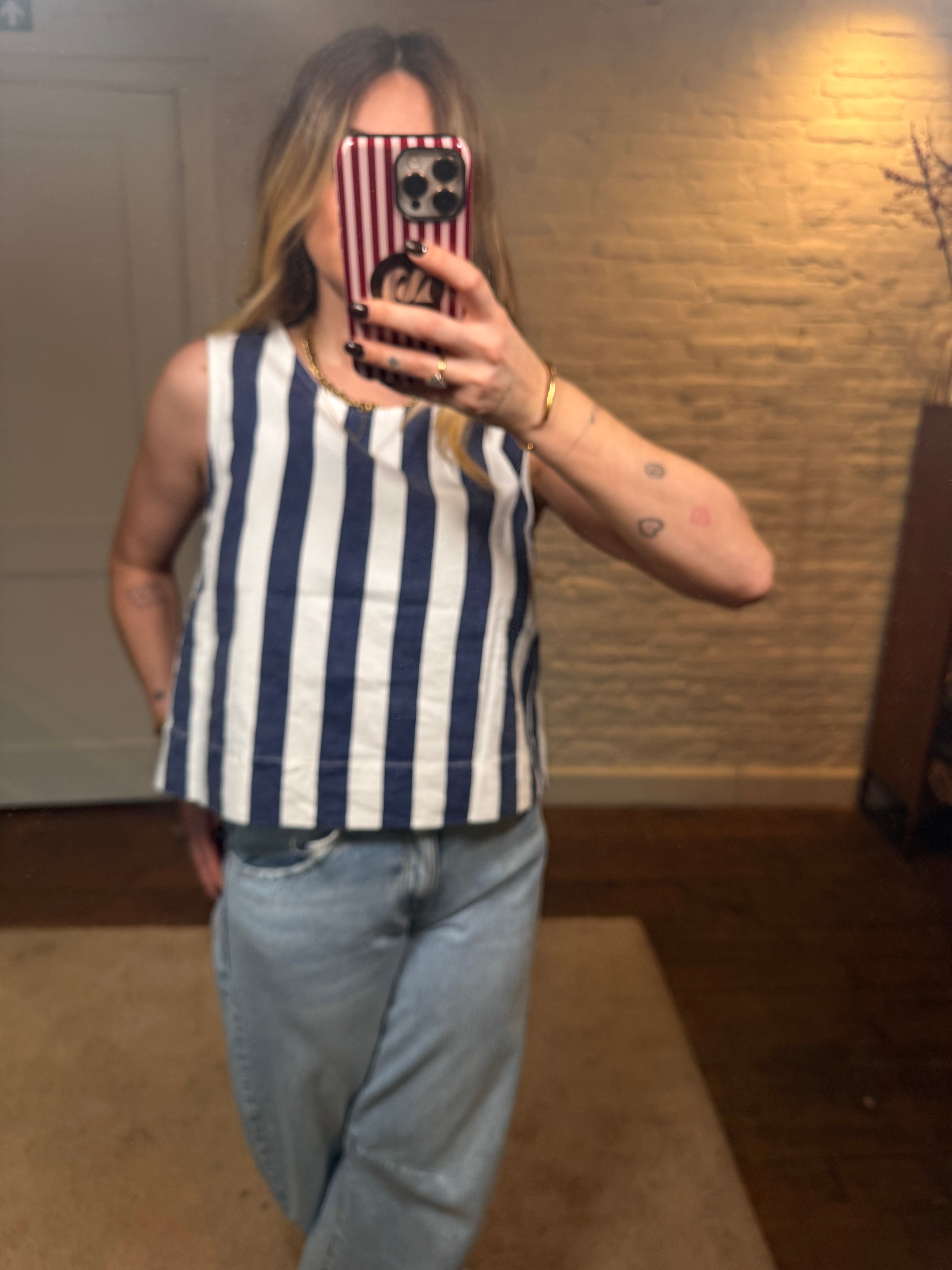 Deze leuke top met strepen is een frisse en stijlvolle toevoeging aan je garderobe. De rugdecolleté geeft de top een speelse, vrouwelijke touch en maakt hem net dat beetje specialer.