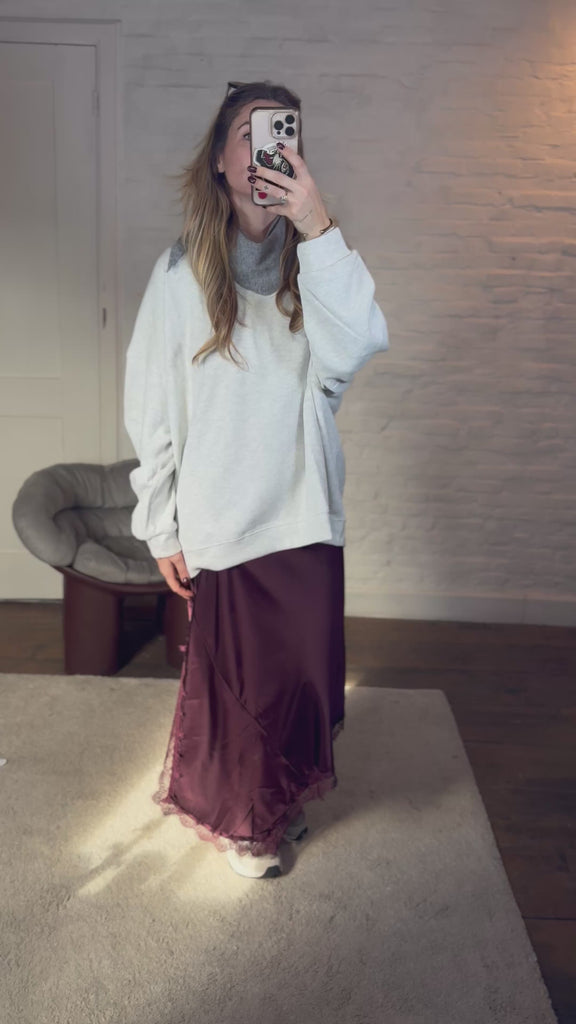 Deze rok heeft een luxueuze silky look en een speelse asymmetrische zoom. De kanten afwerking aan de boord geeft een vrouwelijke touch. Dankzij de rekbare tailleband zit hij super comfortabel en past hij zich mooi aan. Komt in 1 maat – ik ben 1m68 en draag normaal maat M, en hij past perfect.
