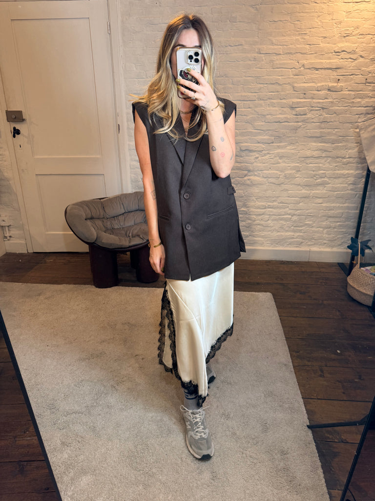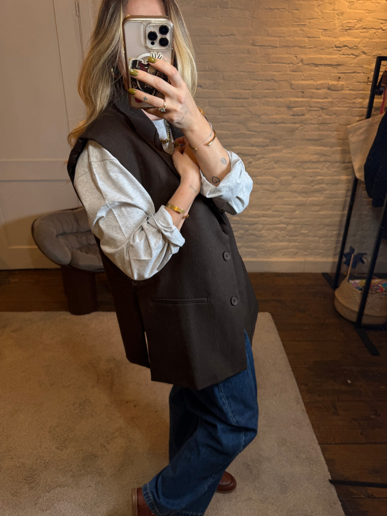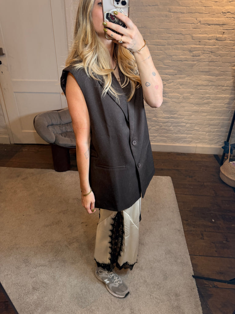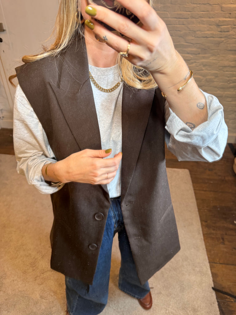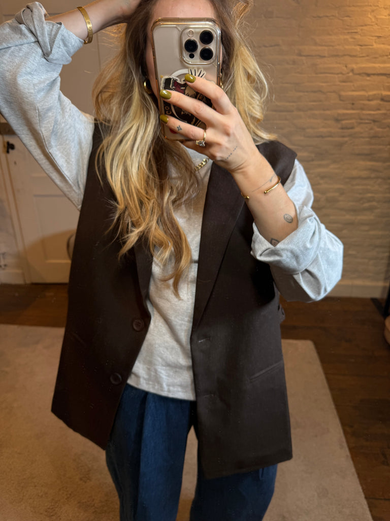 Een echte eyecatcher! Deze blazer heeft een moderne, oversized fit en open zijkanten voor een speelse, gelaagde look. Draag hem over een longsleeve, blouse of knit voor een stijlvolle, eigentijdse outfit. Komt in taille unique en valt lekker ruim.