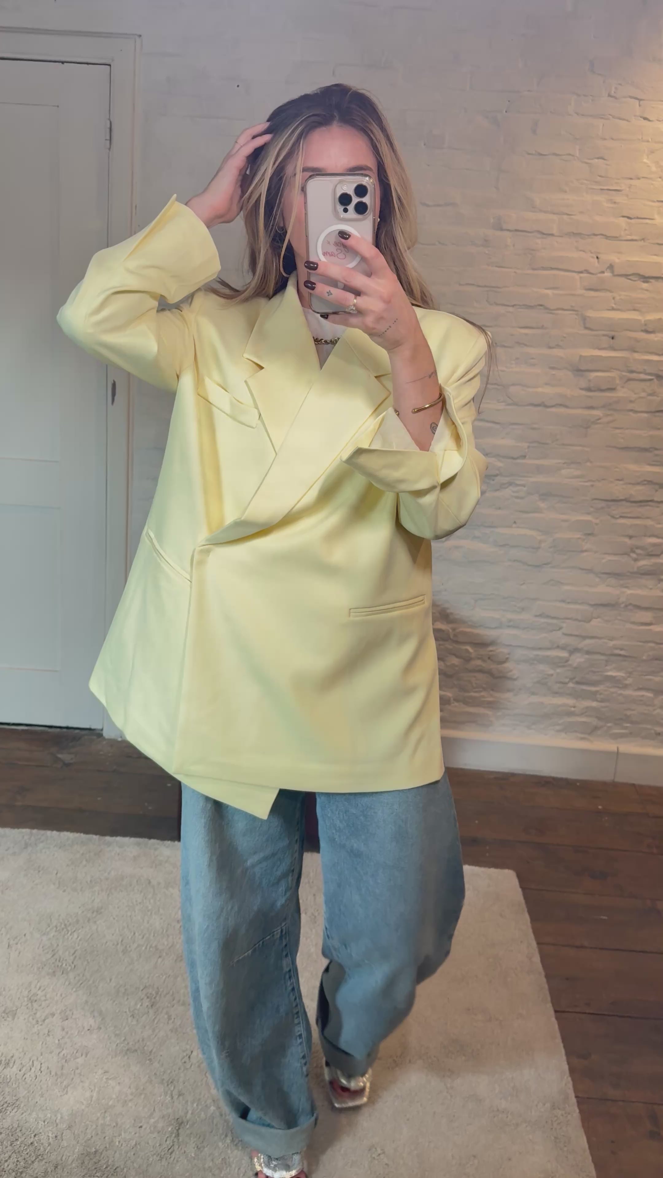Deze blazer is een echte eyecatcher: lekker oversized, stijlvol én comfy. Hij is volledig gevoerd, gemaakt van 100% polyester en heeft een unieke sluiting aan de zijkant – een subtiele twist op een klassieker.