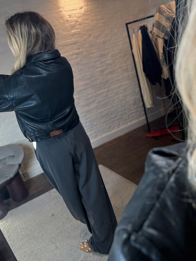 Deze leatherlook jas is een echte must-have: super zacht, stijlvol en toch stoer. Gemaakt uit 100% polyester en afgewerkt met een prachtig detail op de rug dat hem net dat tikkeltje specialer maakt.