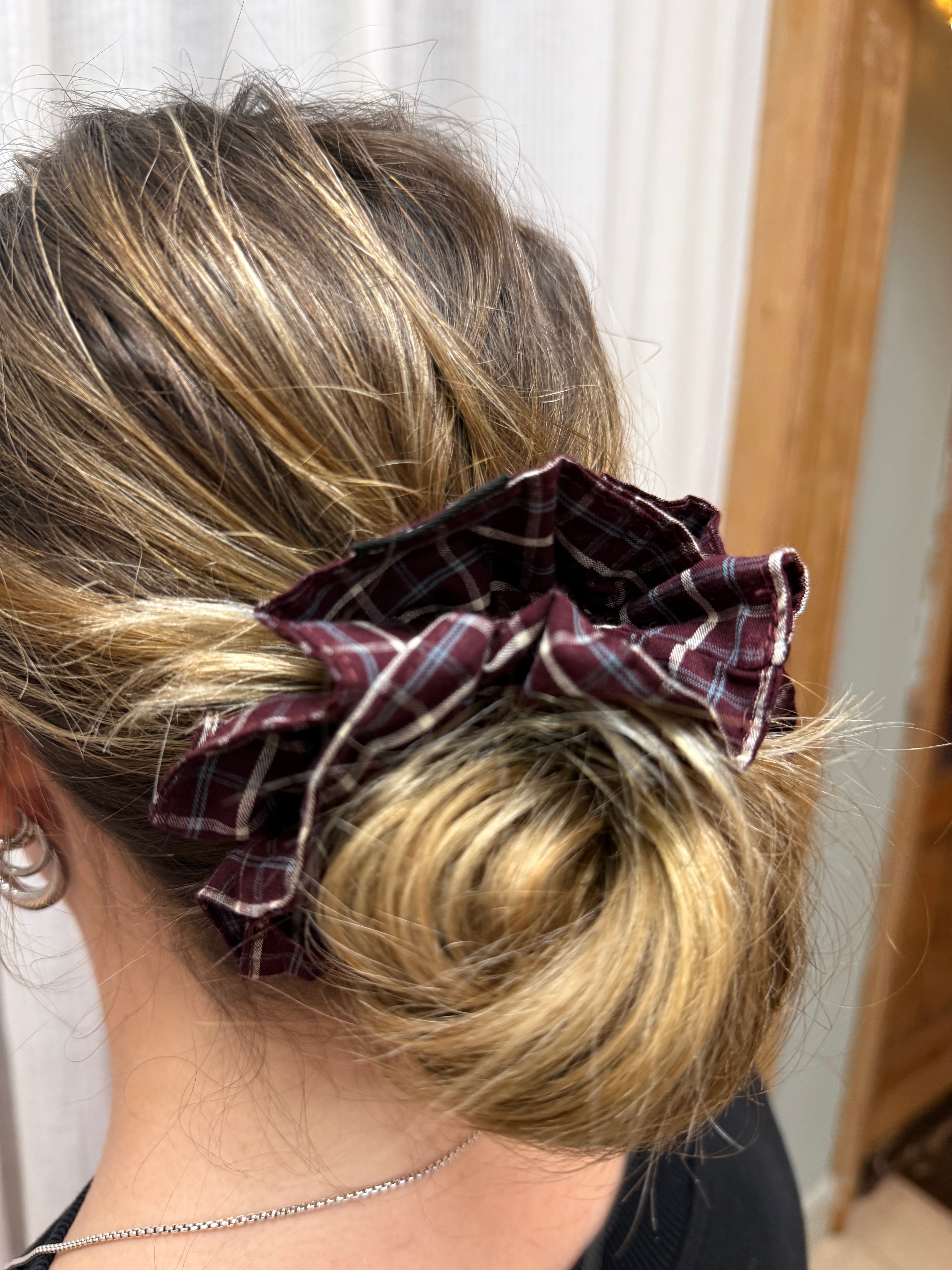 Scrunchie ruitjes - bordeaux is in bestelling en wordt verzonden zodra het weer op voorraad is