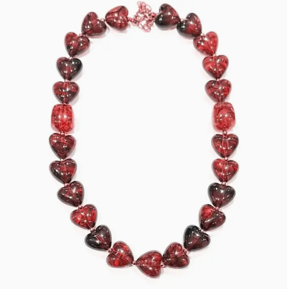 Hartenketting van amberhars en verguld staal