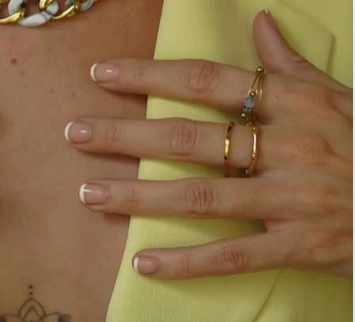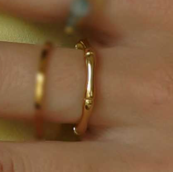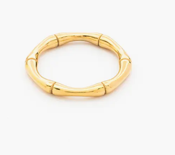Zeshoekige ring met bamboevormige details Materiaal: verguld roestvrij staal