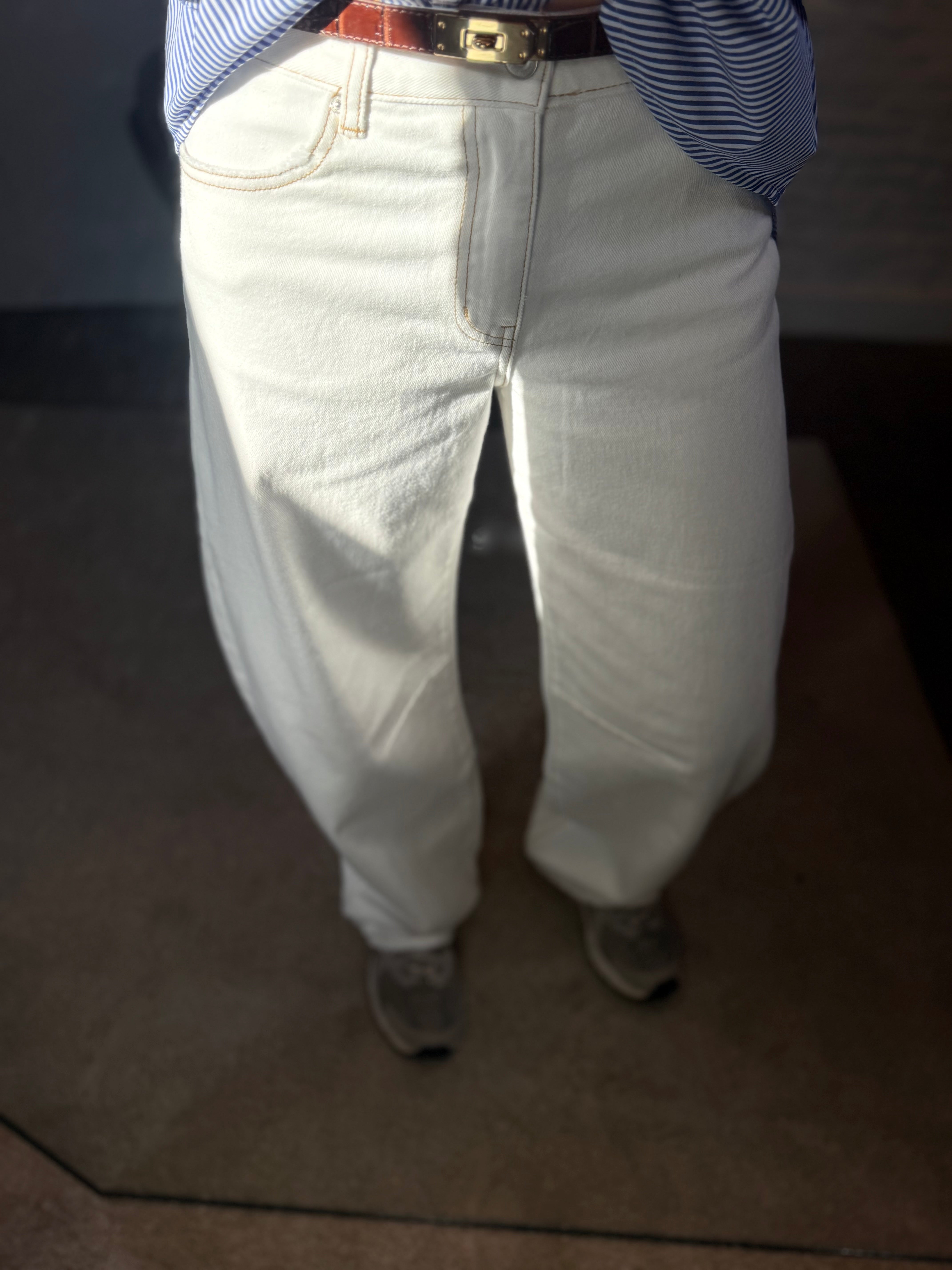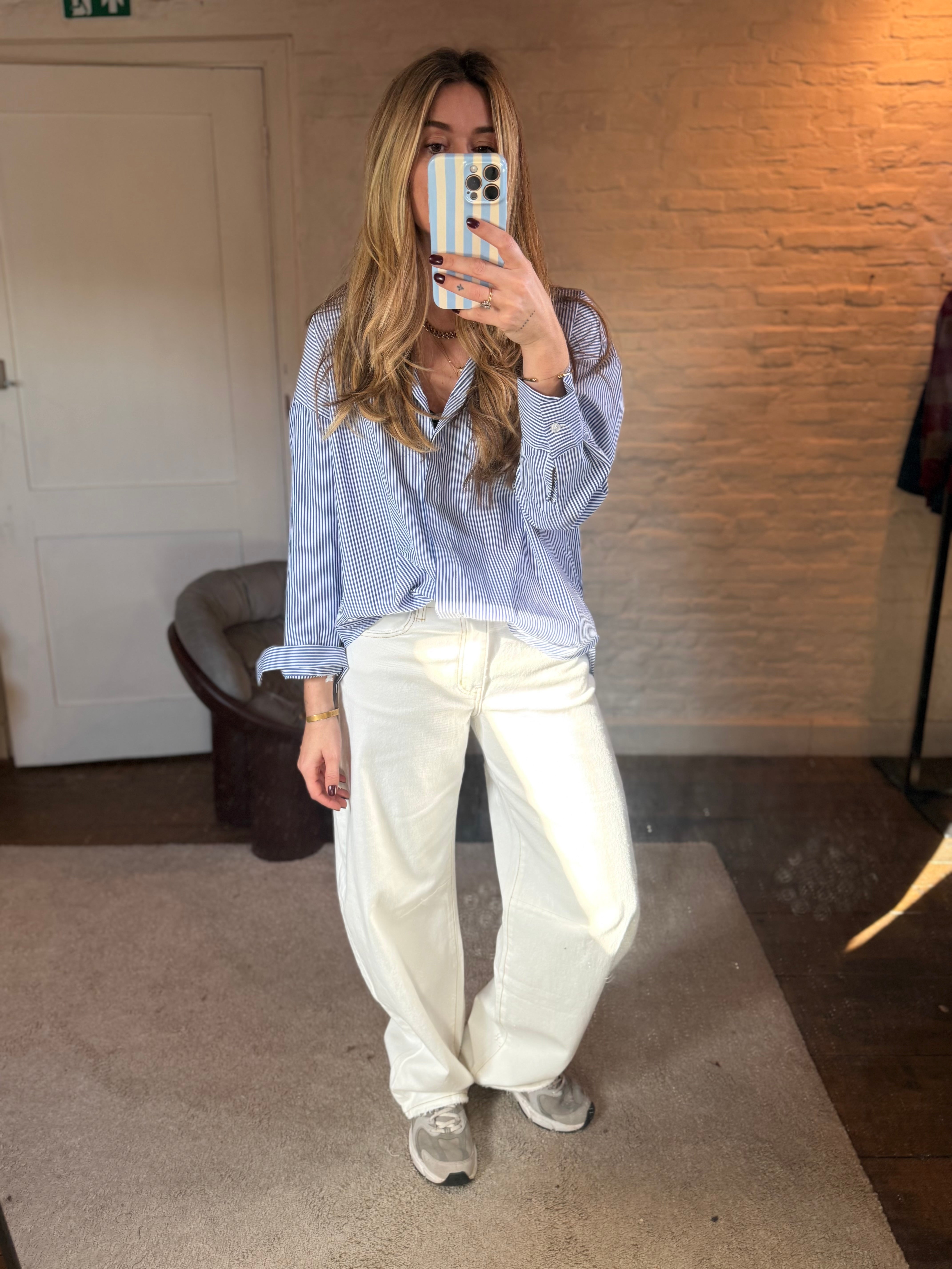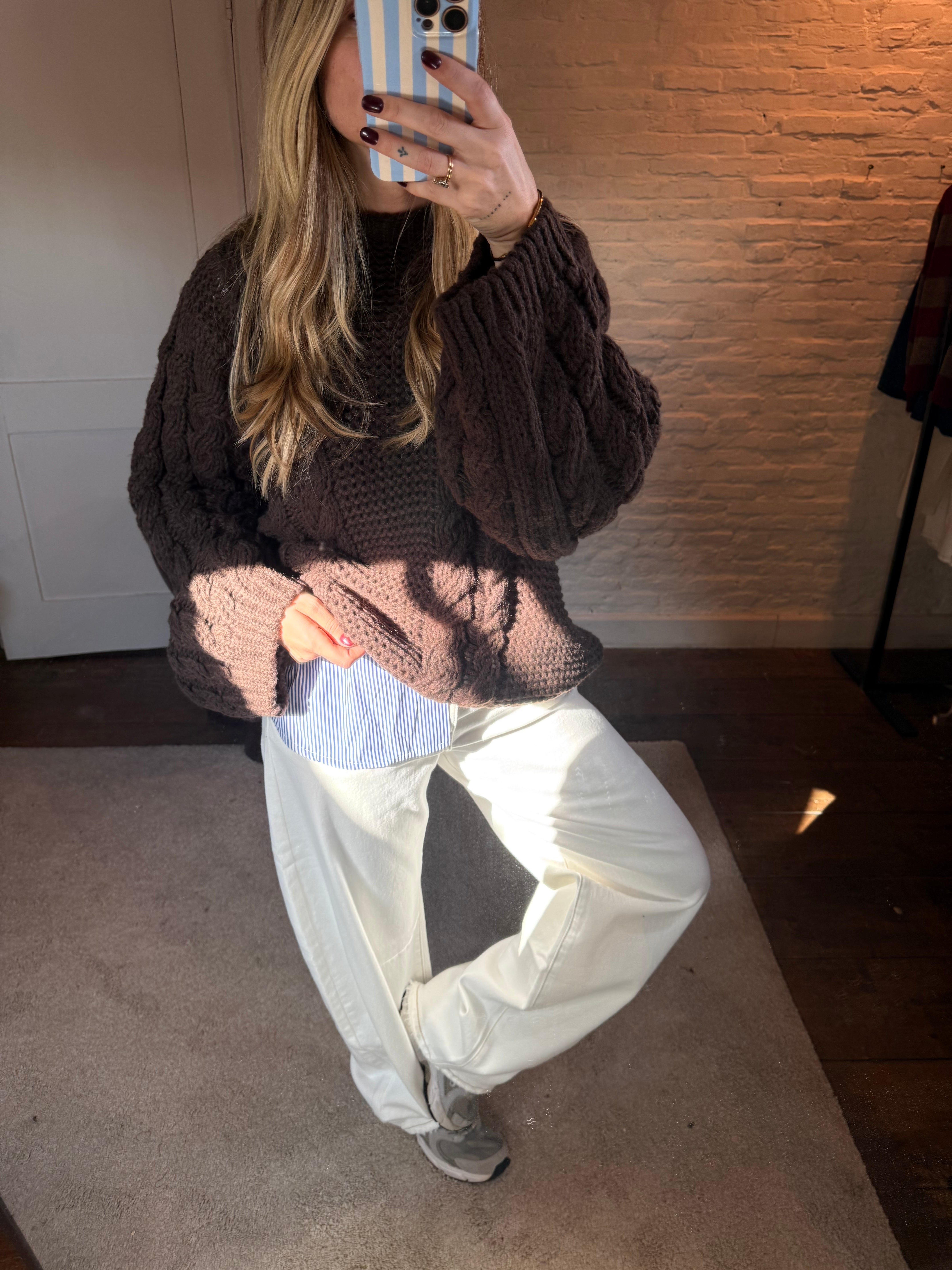 Ik ben 1m68 en de bruine variant valt wel wat langer, waardoor hij een iets stoerdere, nonchalante look geeft. Ook heeft deze jeans een dubbele naad aan de zijkant, wat zorgt voor een subtiele maar stijlvolle detailafwerking.