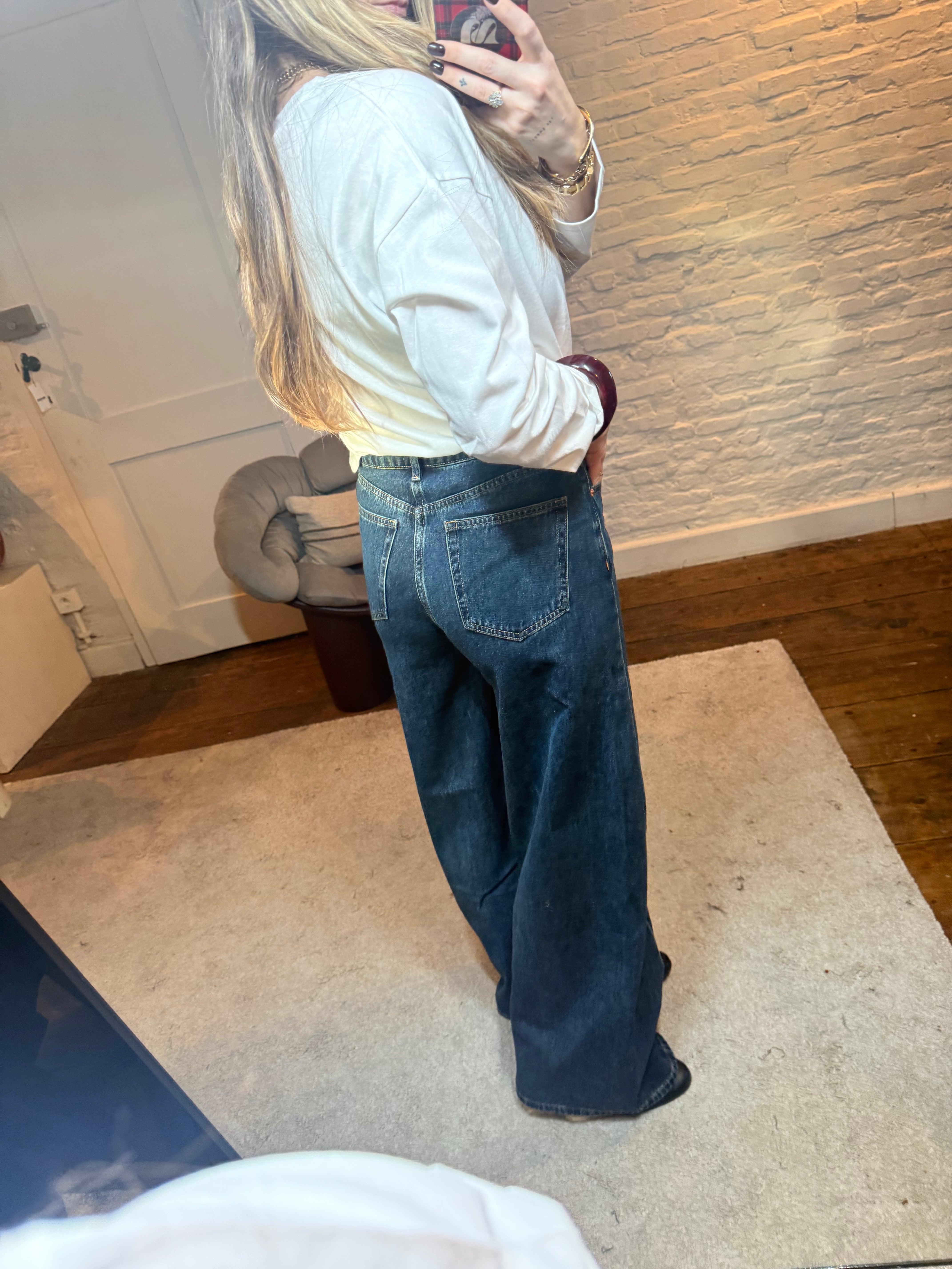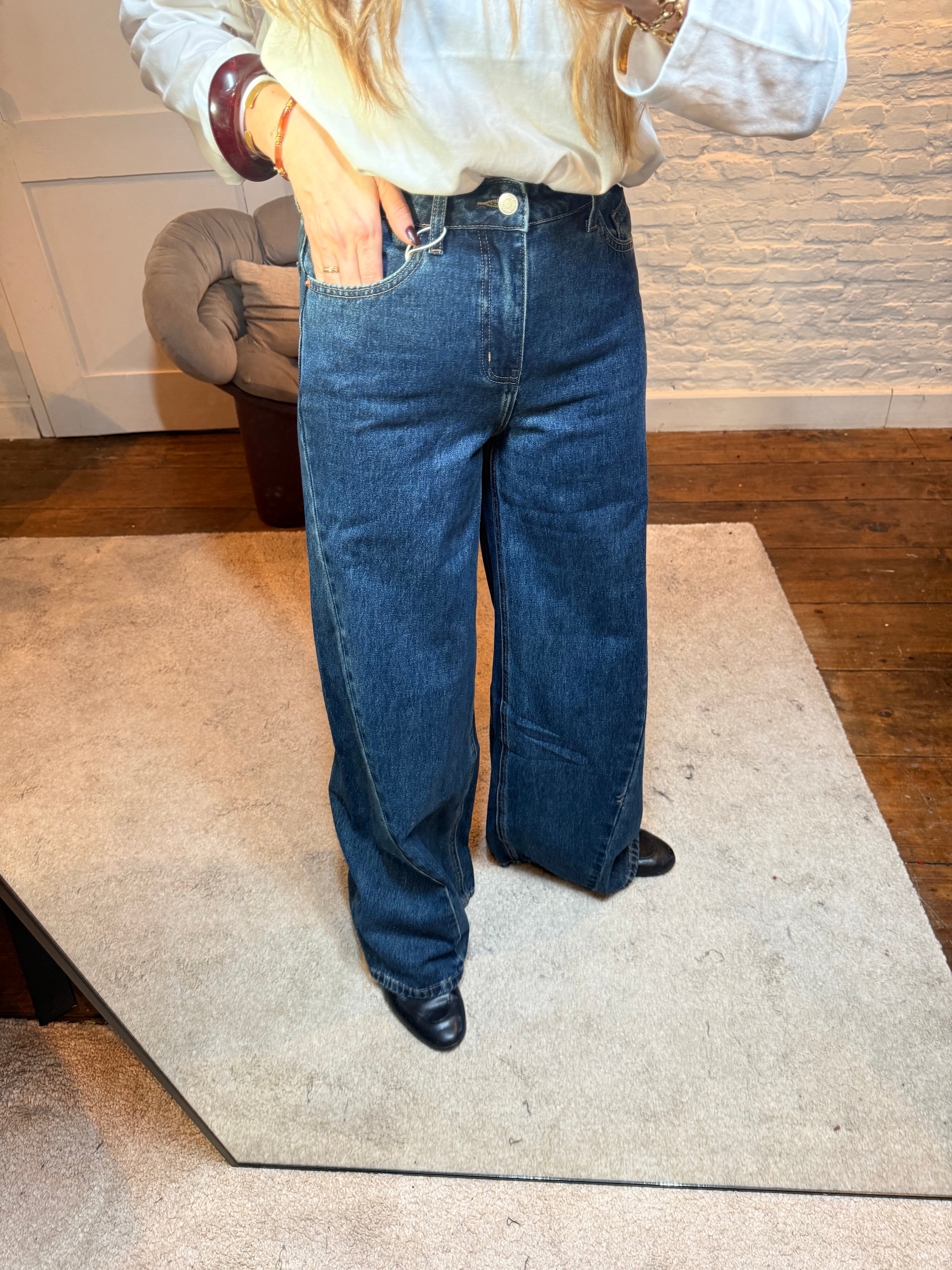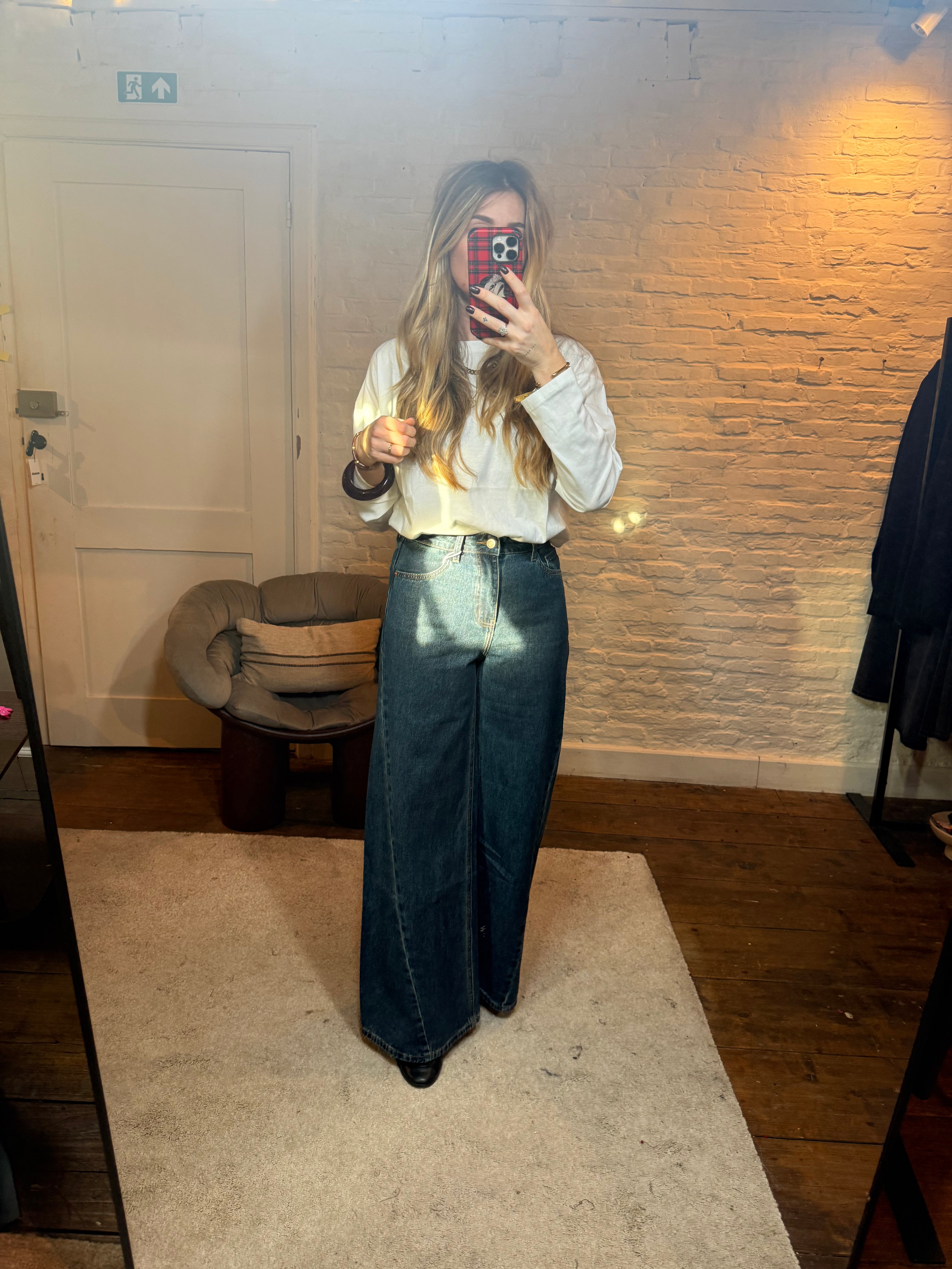 De Barnes jeans van Oraije is een wide leg balloon jeans met hoge taille en een schuine zoom aan de voorkant voor een moderne, flatterende look. Comfortabel en stijlvol, van casual tot chic.