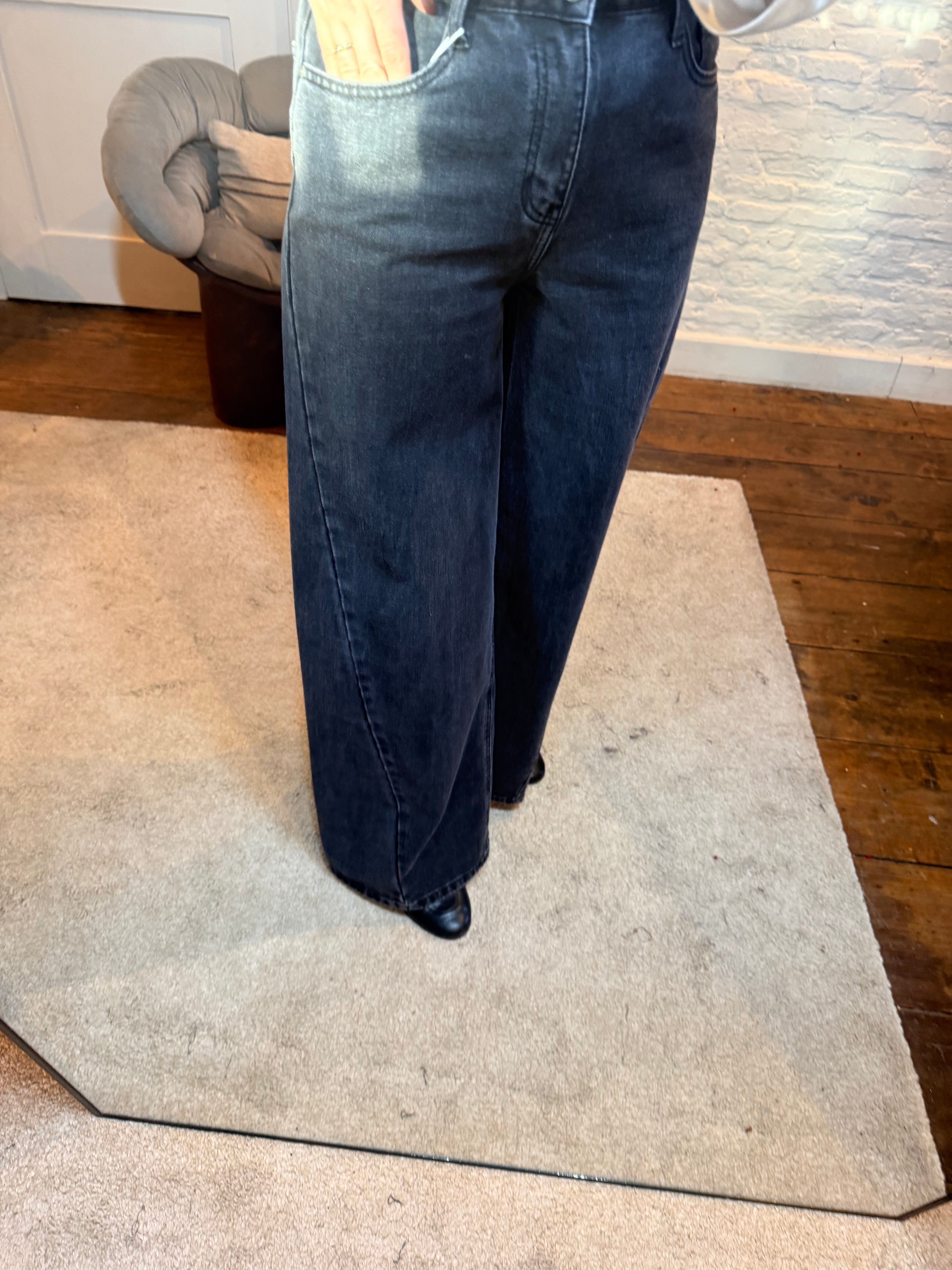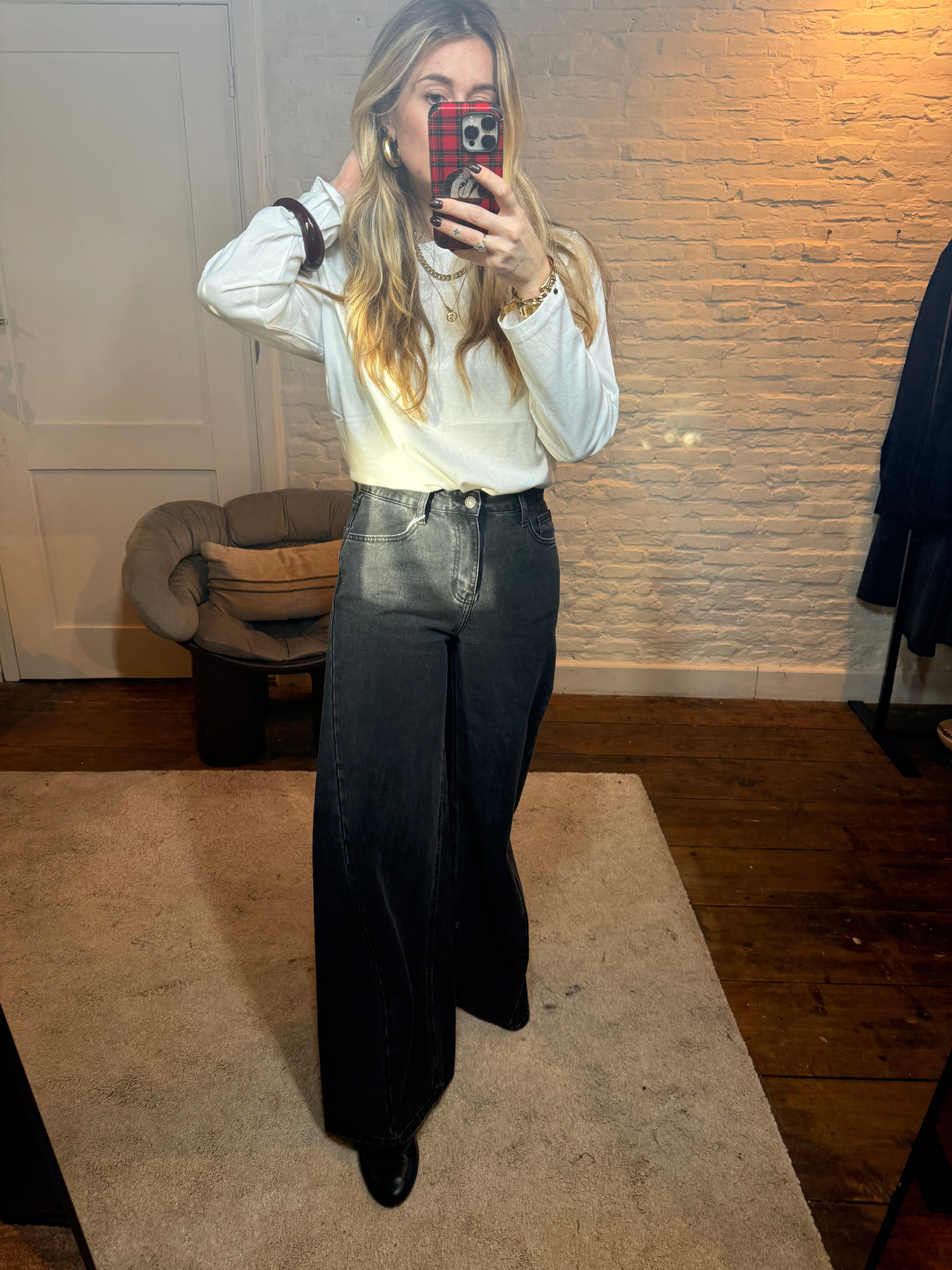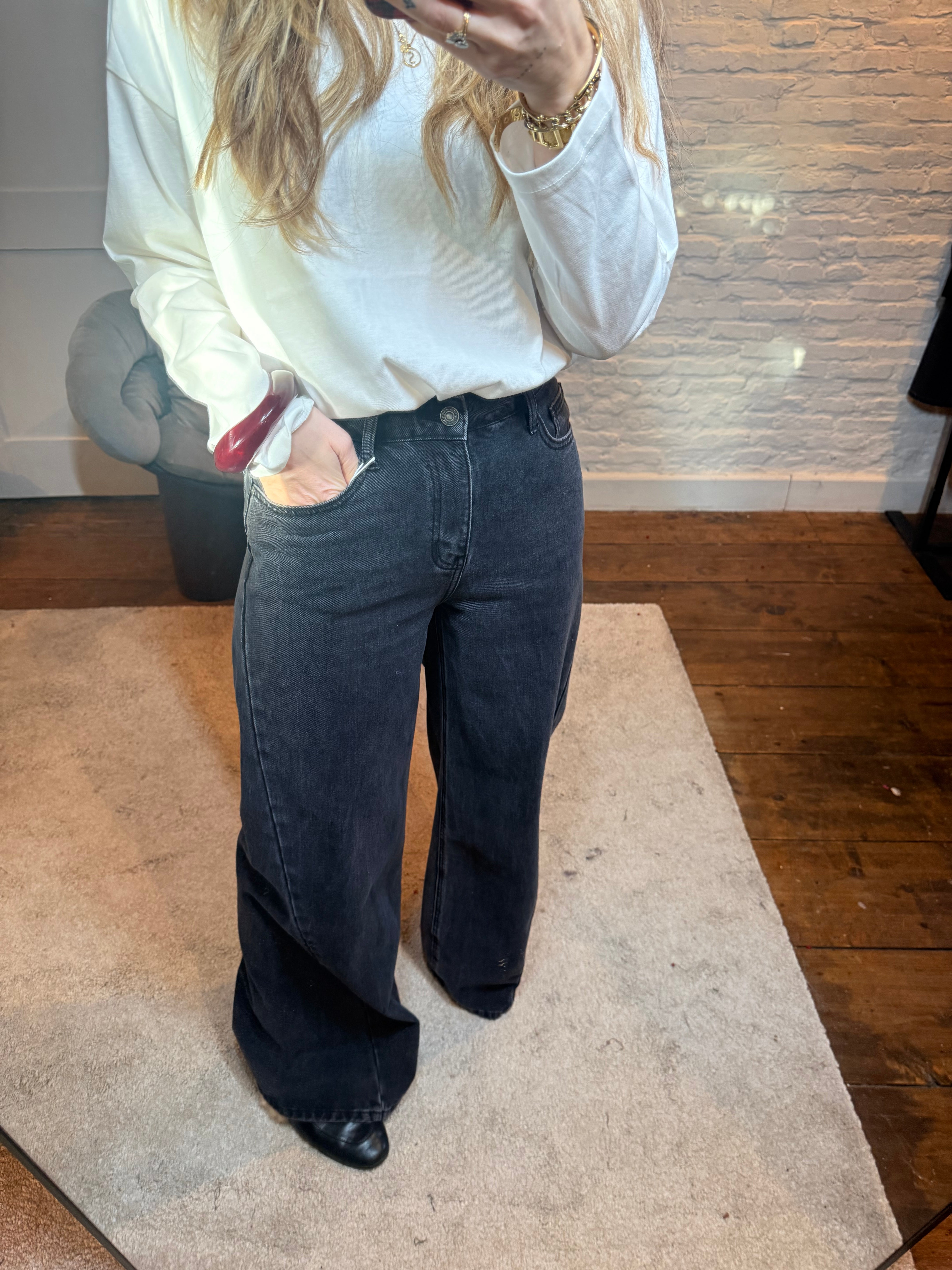 De Barnes jeans van Oraije is een wide leg balloon jeans met hoge taille en een schuine zoom aan de voorkant voor een moderne, flatterende look. Comfortabel en stijlvol, van casual tot chic.