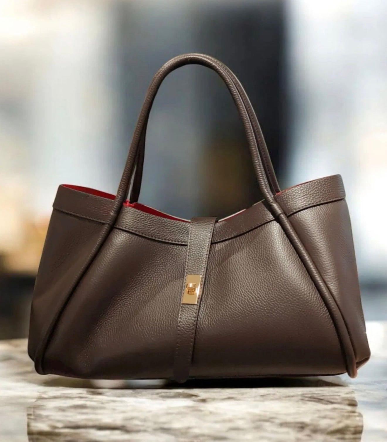 Deze ruime lederen tas combineert tijdloze klasse met een verrassende, luxueuze touch. Het stijlvolle design wordt meteen naar een hoger niveau getild door de rode voering en de bijpassende rode binnentas — perfect om je essentials netjes georganiseerd te houden.