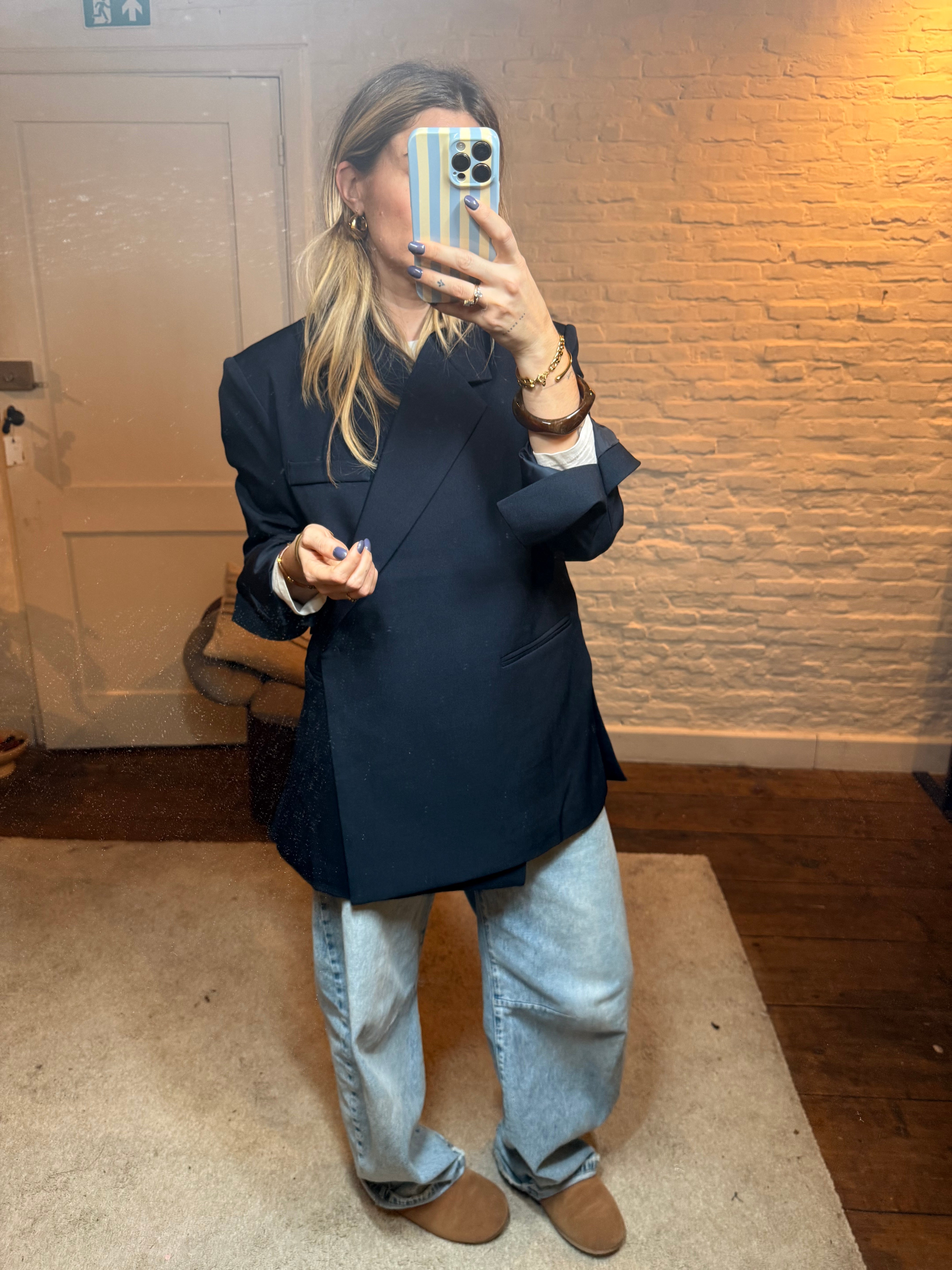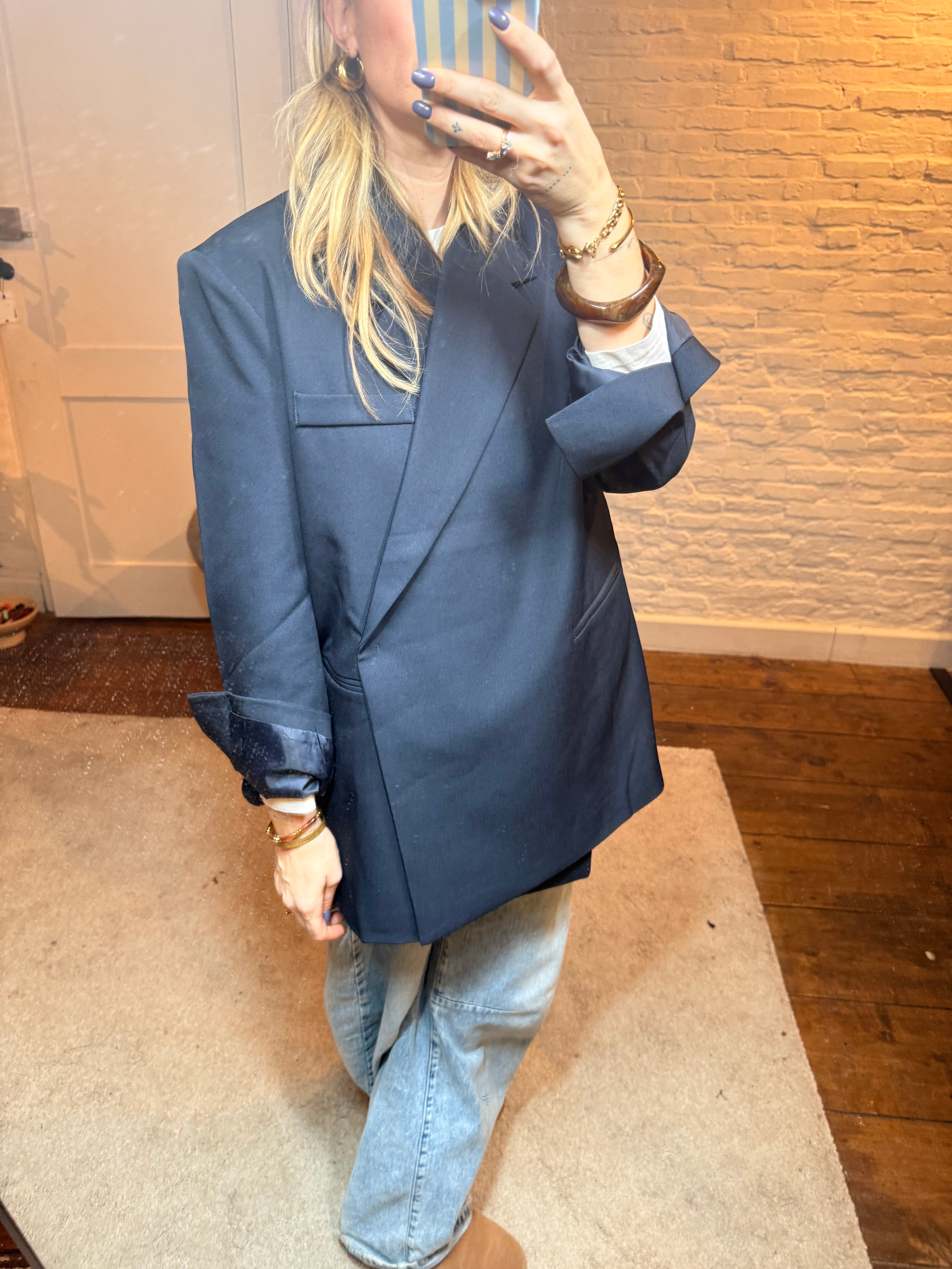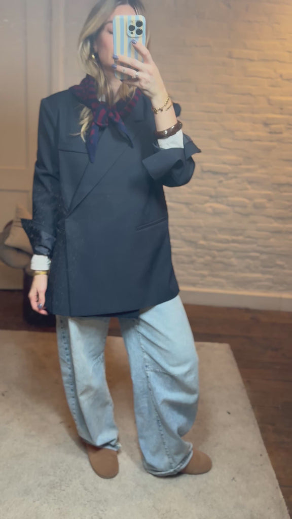 Deze blazer is een echte eyecatcher: lekker oversized, stijlvol én comfy. Hij is volledig gevoerd, gemaakt van 100% polyester en heeft een unieke sluiting aan de zijkant – een subtiele twist op een klassieker.