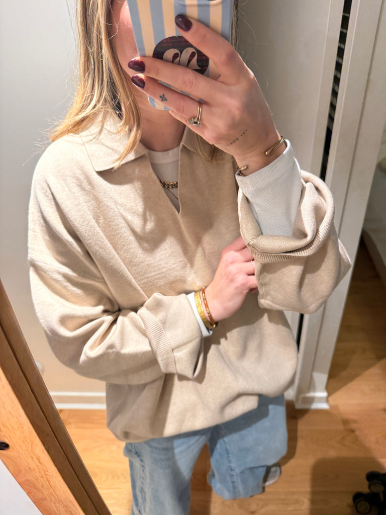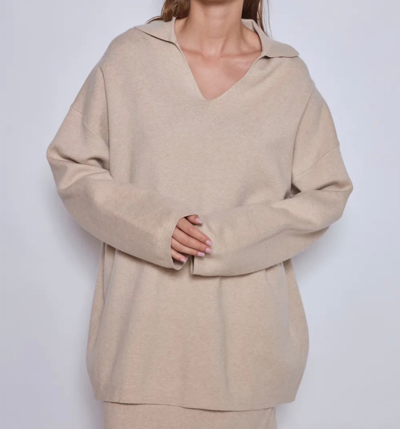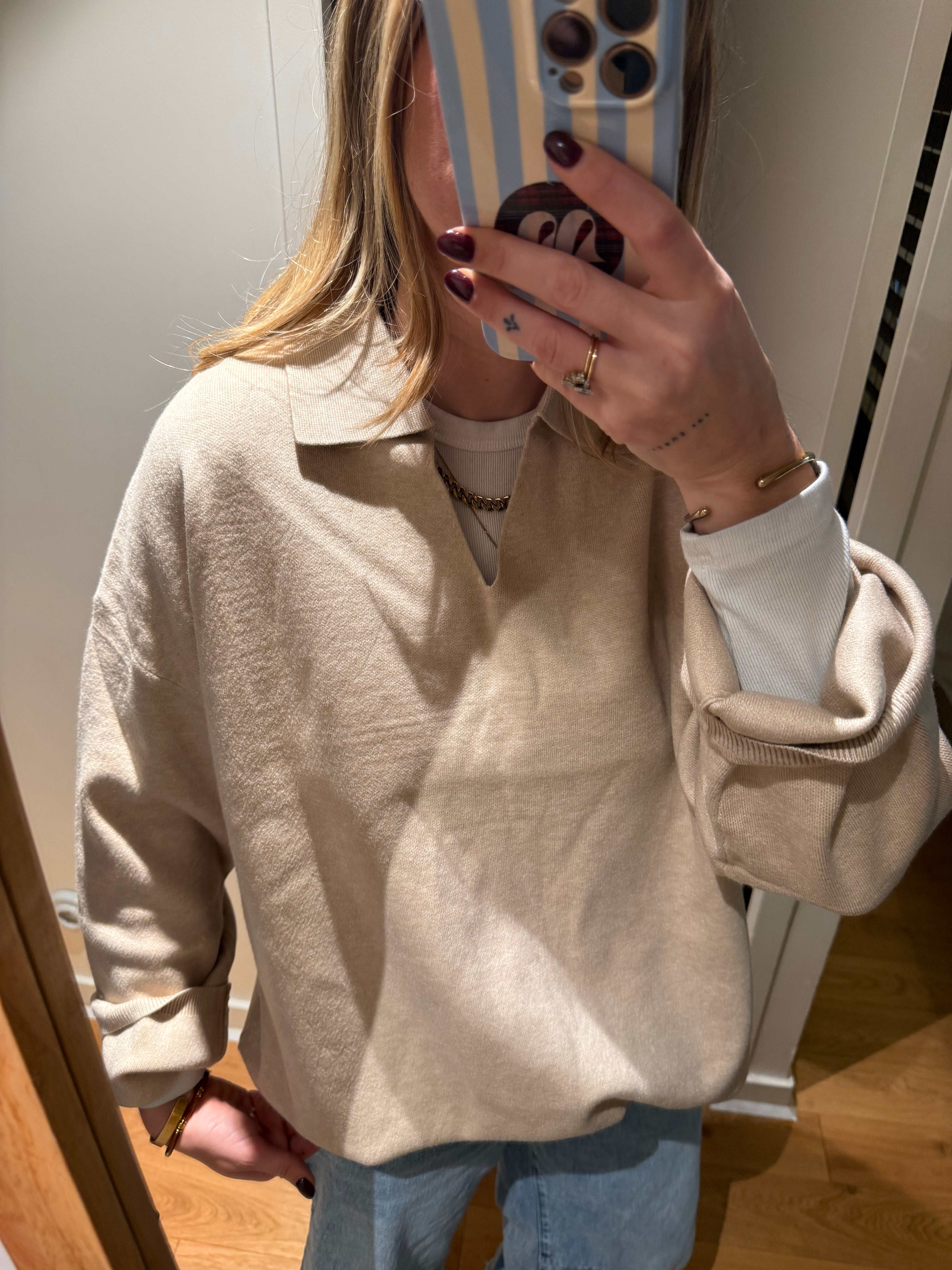 Trui met polokraag en V-hals, met lange mouwen voor een tijdloze, casual look. De rechte snit en verlaagde schouders zorgen voor een ontspannen silhouet, terwijl de soepele, zachte stof heerlijk comfortabel aanvoelt. Standaard lengte met nette afwerking.