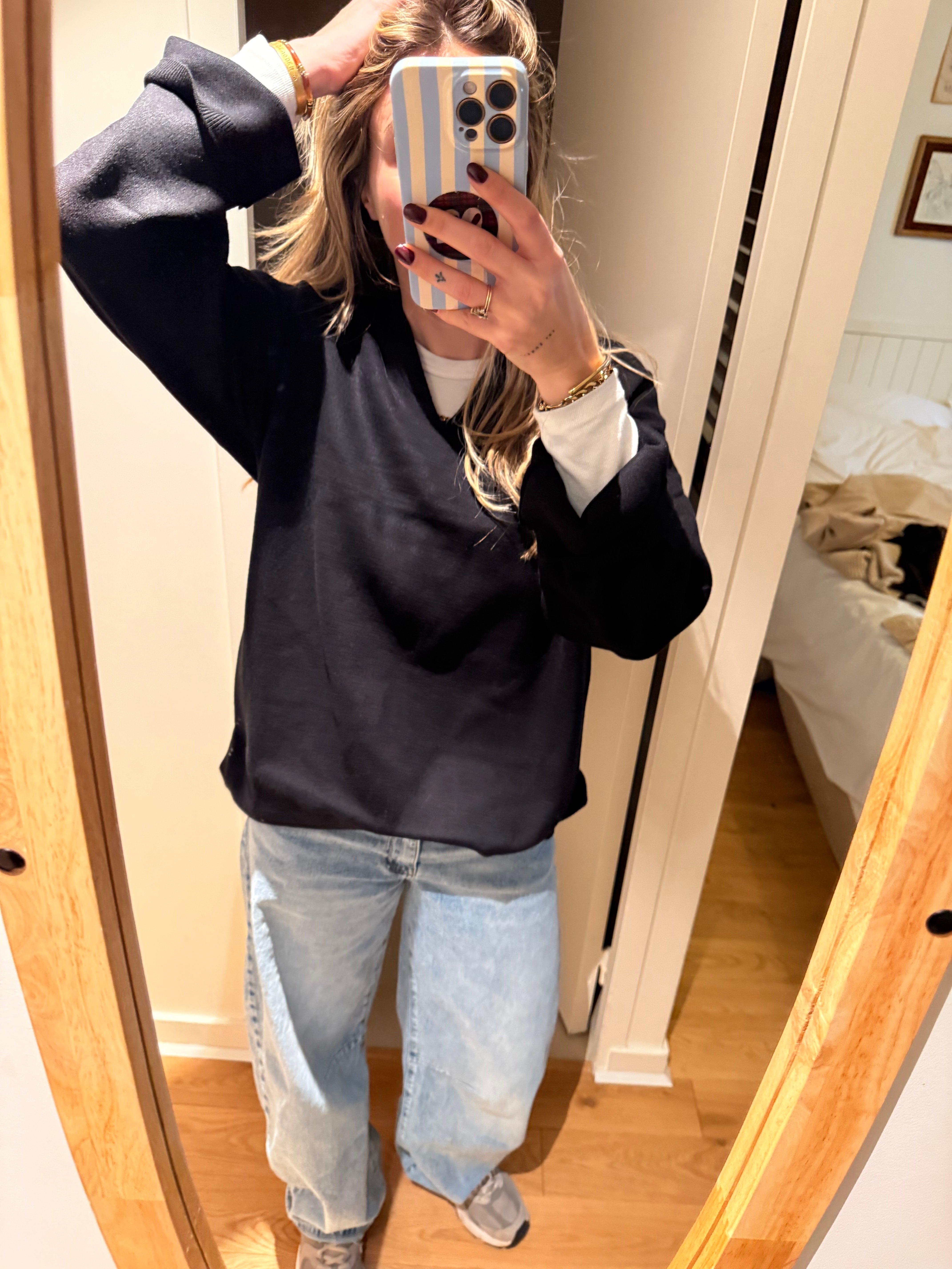 De pasvorm is oversized voor een nonchalante, stijlvolle look.