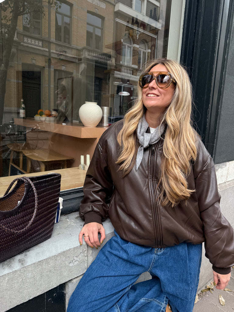 Deze coole bomberjas in leatherlook is een echte eyecatcher. Hij is volledig gevoerd en houdt je lekker warm, terwijl de oversized fit zorgt voor die nonchalante, trendy uitstraling.