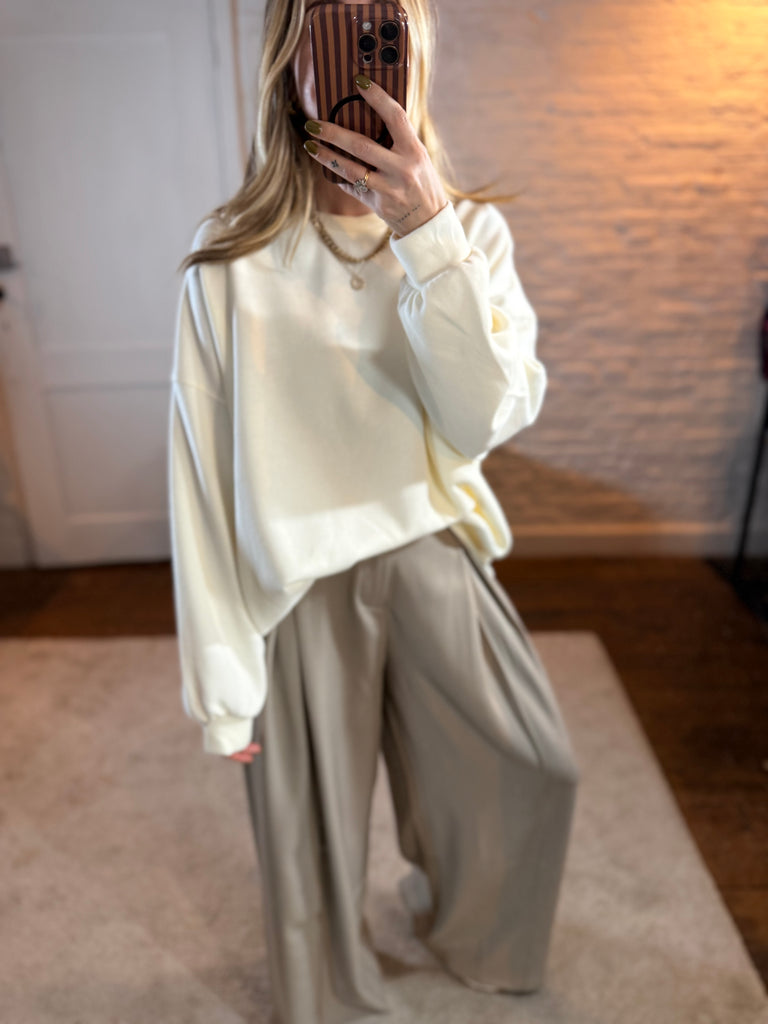 Tijdloos en stijlvol — deze pantalon met hoge taille en plooien vooraan geeft elke outfit een elegante touch. De stof voelt soepel aan en heeft een mooie, flatterende val. Gemaakt van 95% polyester en 5% elastaan, waardoor hij comfortabel meebeweegt.
