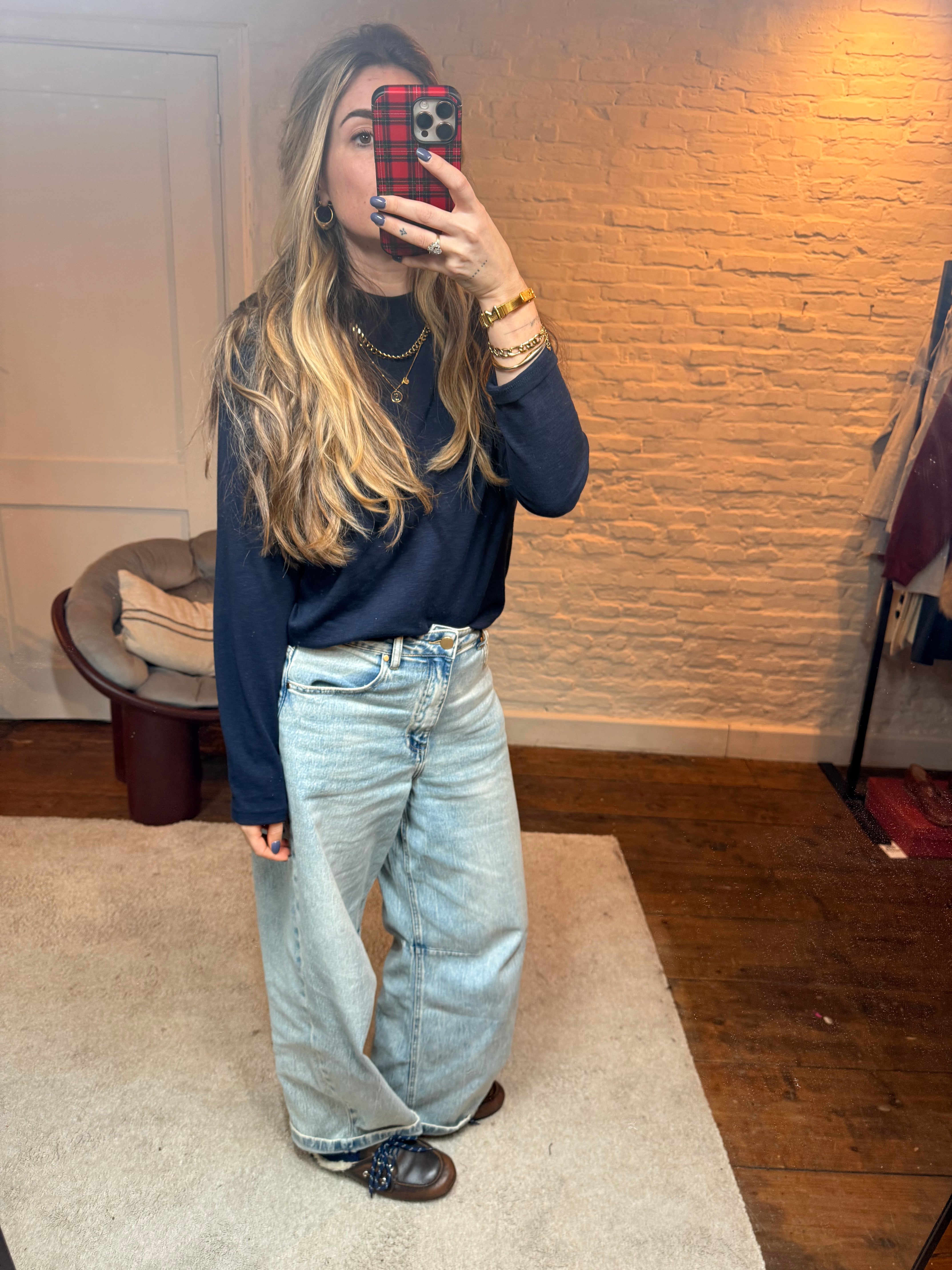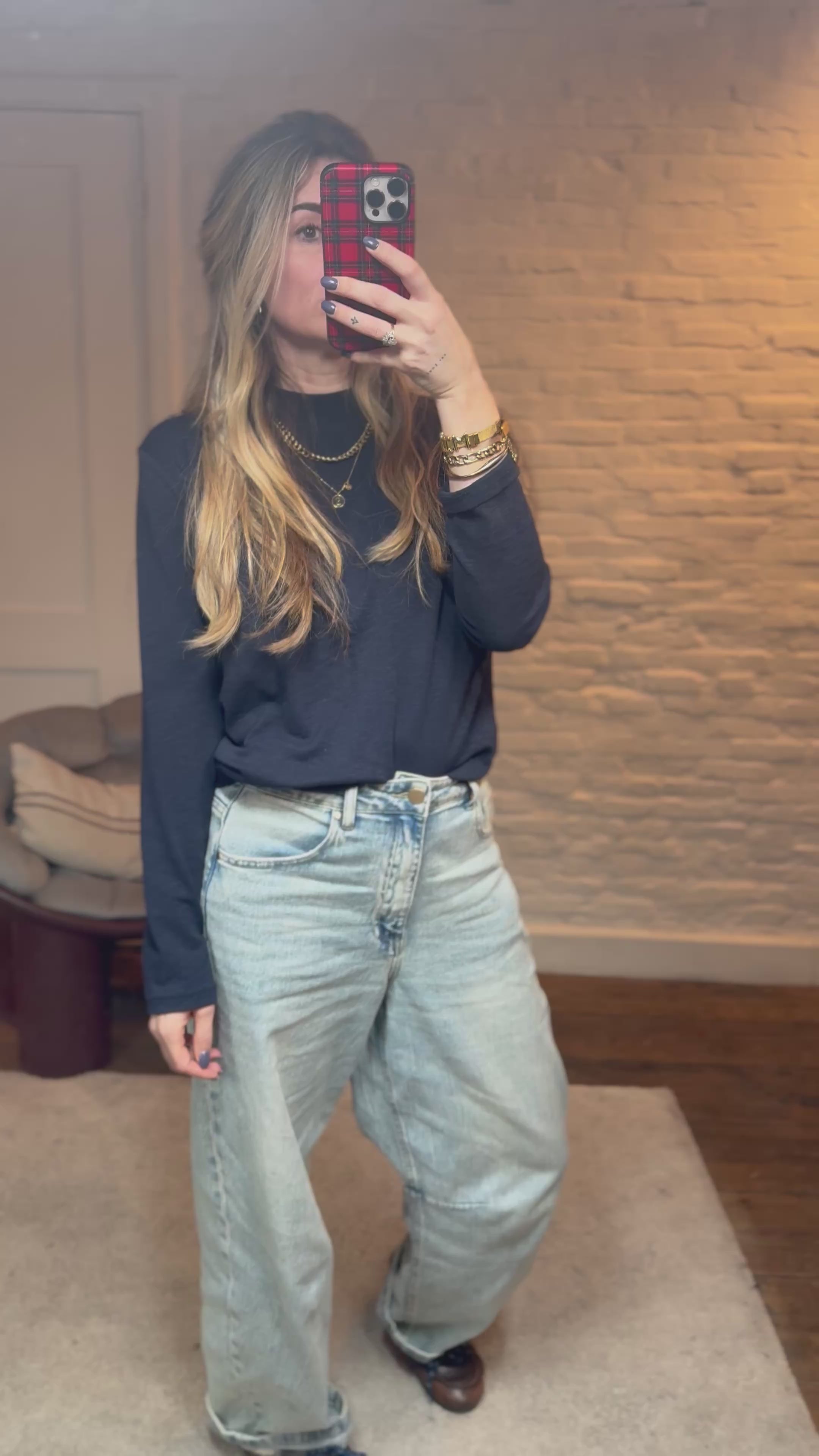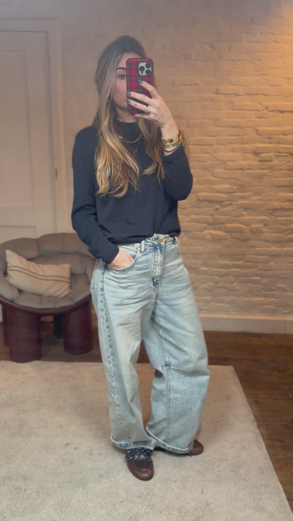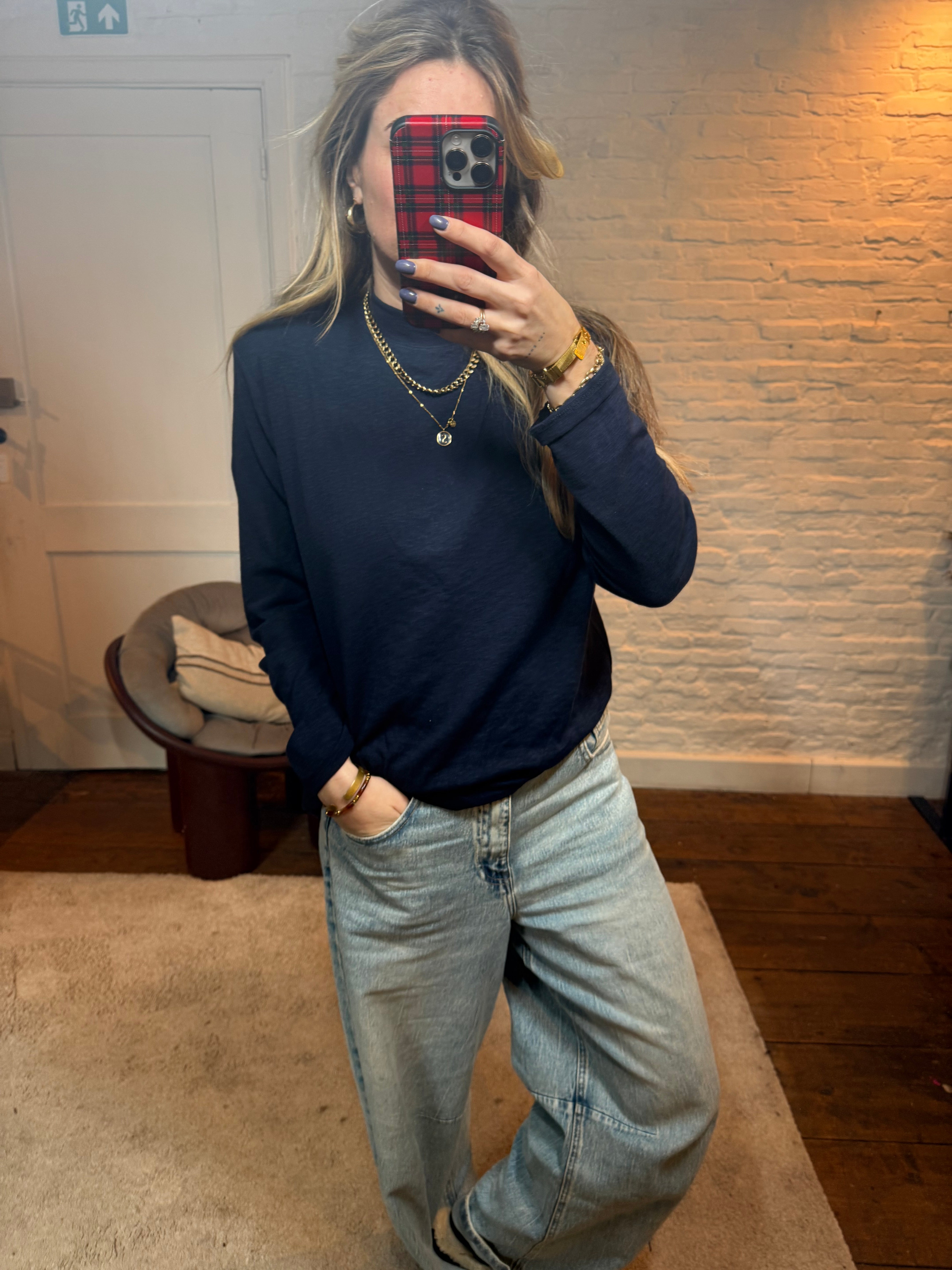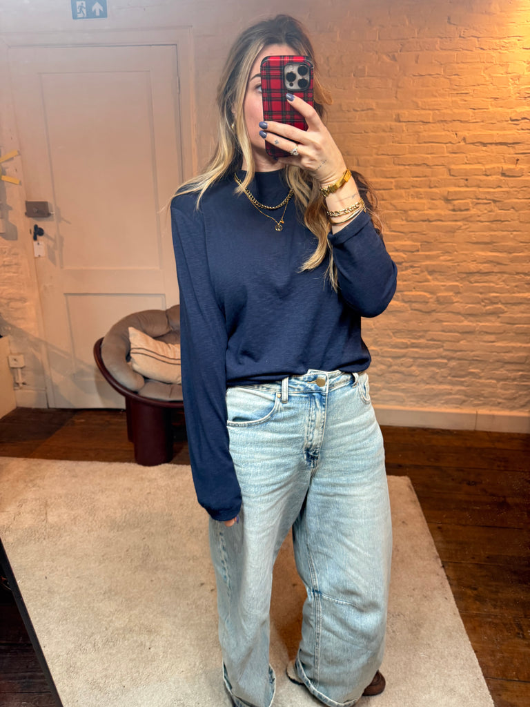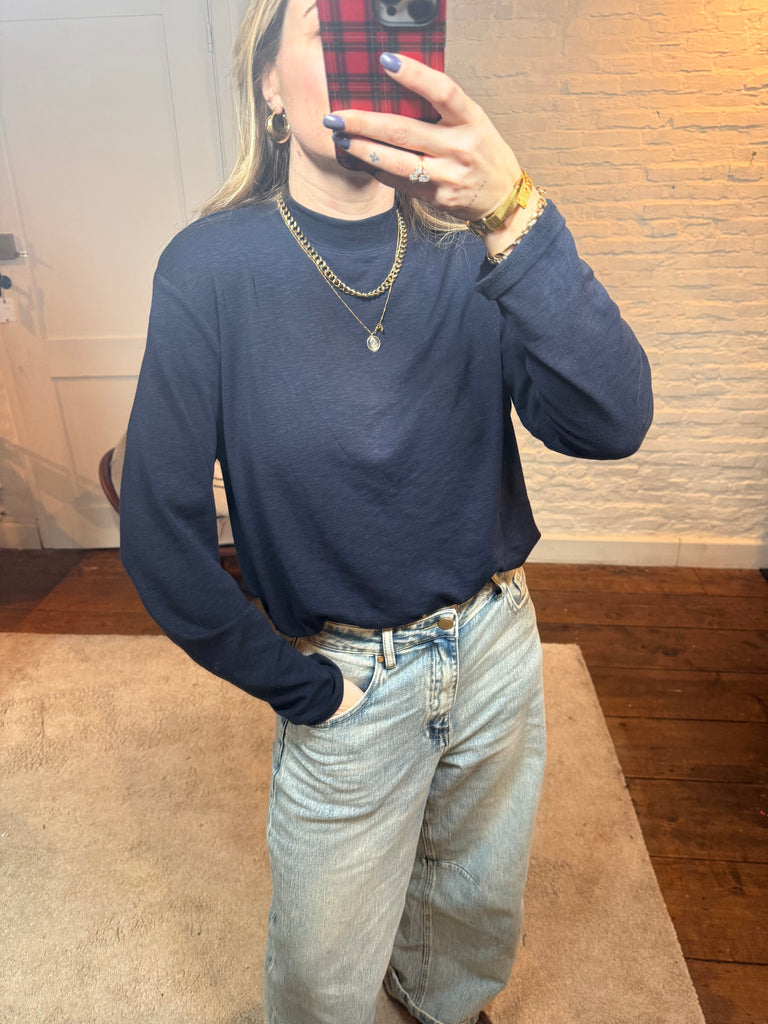 De top sluit mooi aan zonder strak te zitten en is ideaal om solo te dragen of als basislaag onder een blazer, knit of gilet.