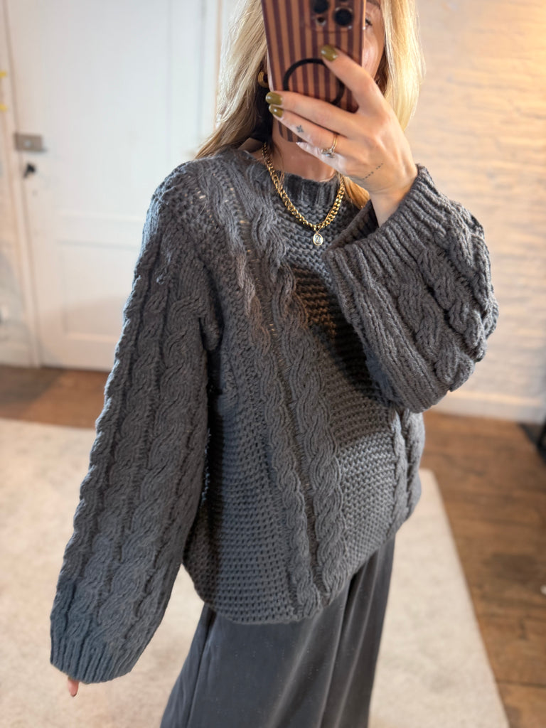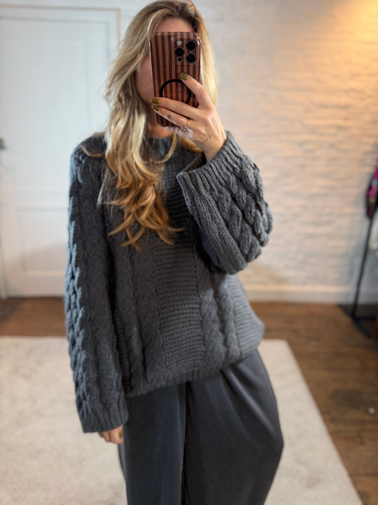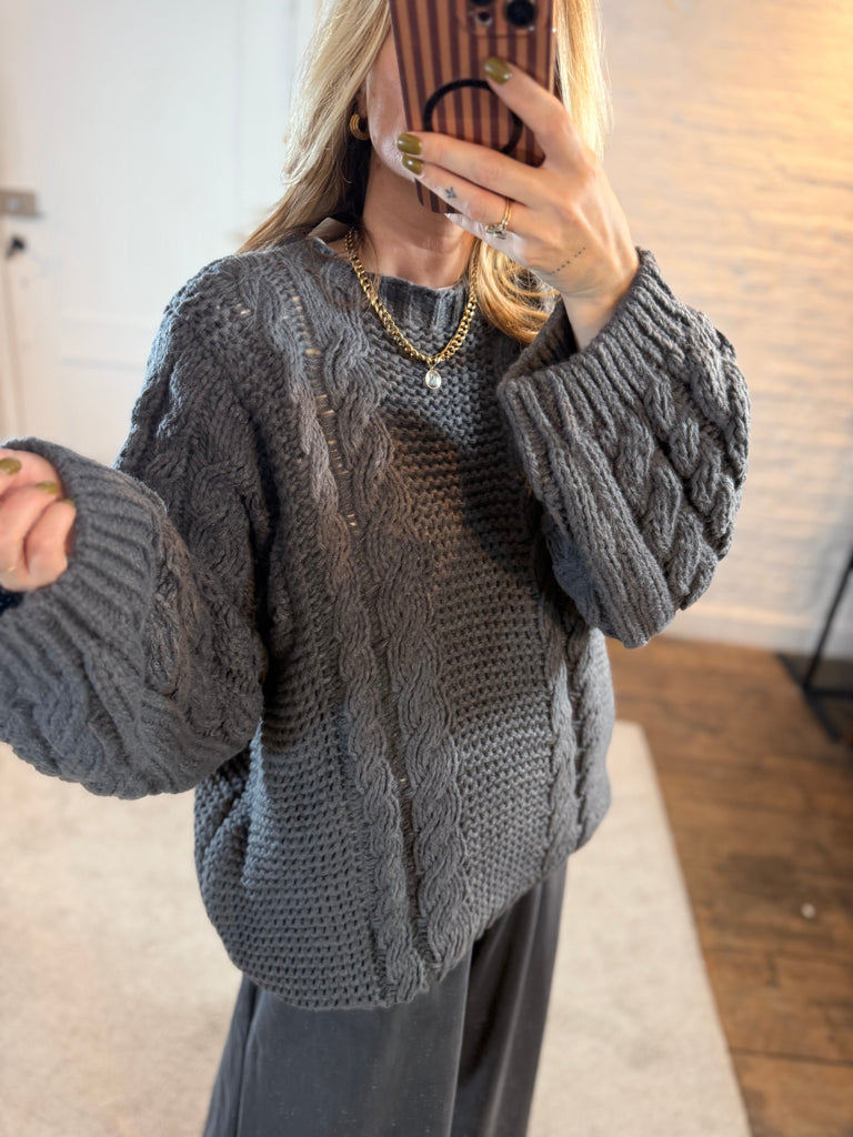 Een cozy musthave voor de koudere dagen! Deze grofgebreide trui heeft een losse, oversized fit met wijde mouwen voor dat nonchalante, stijlvolle effect. Gemaakt van 100% polyester – heerlijk zacht, prikt niet en voelt supercomfortabel aan. Komt in taille unique en valt mooi ruim.
