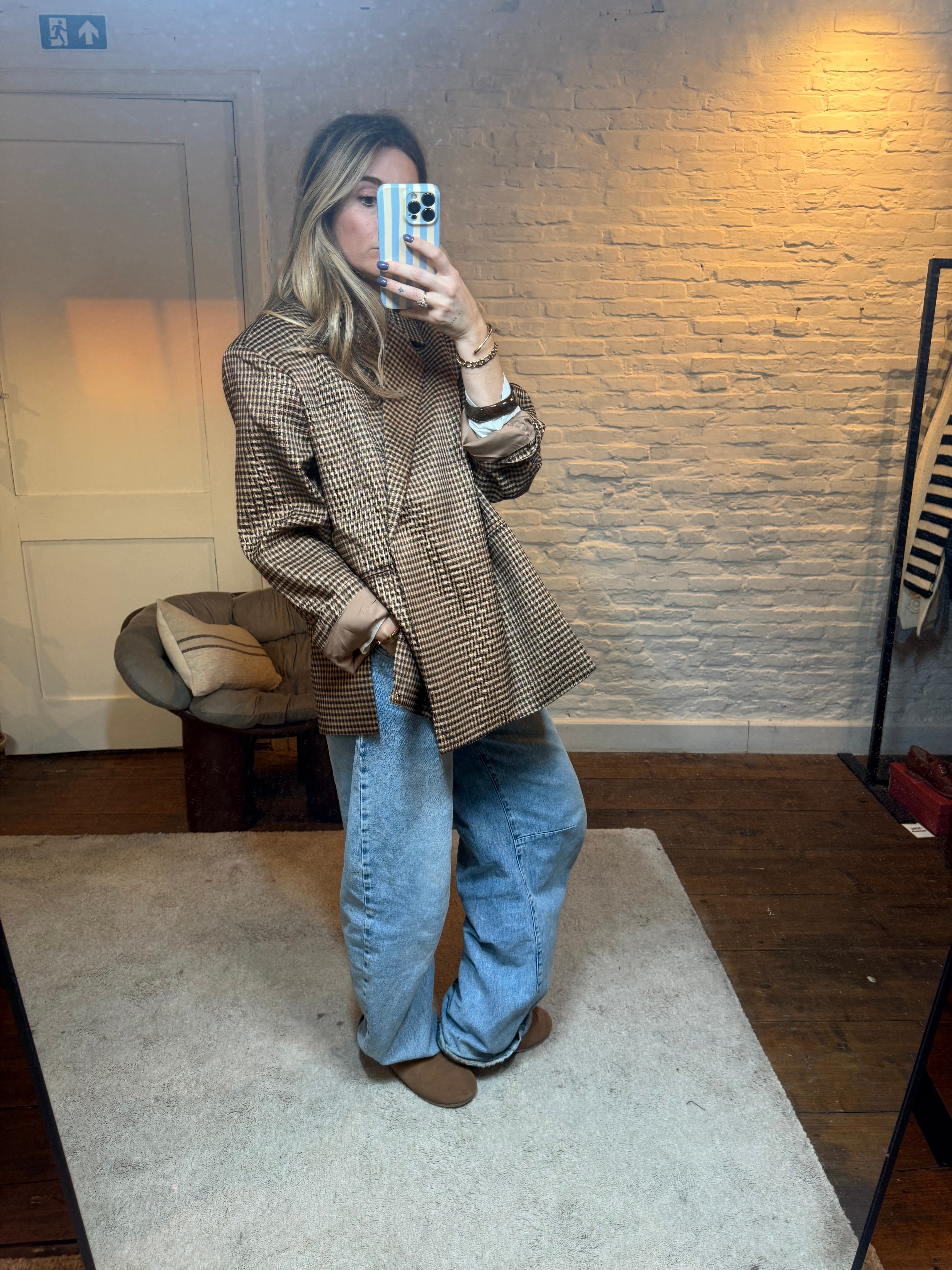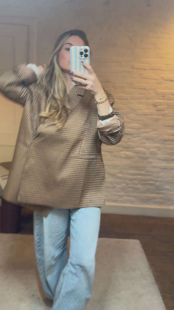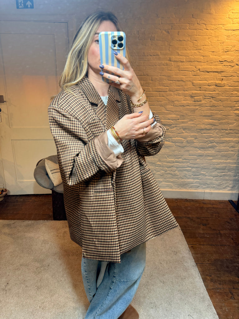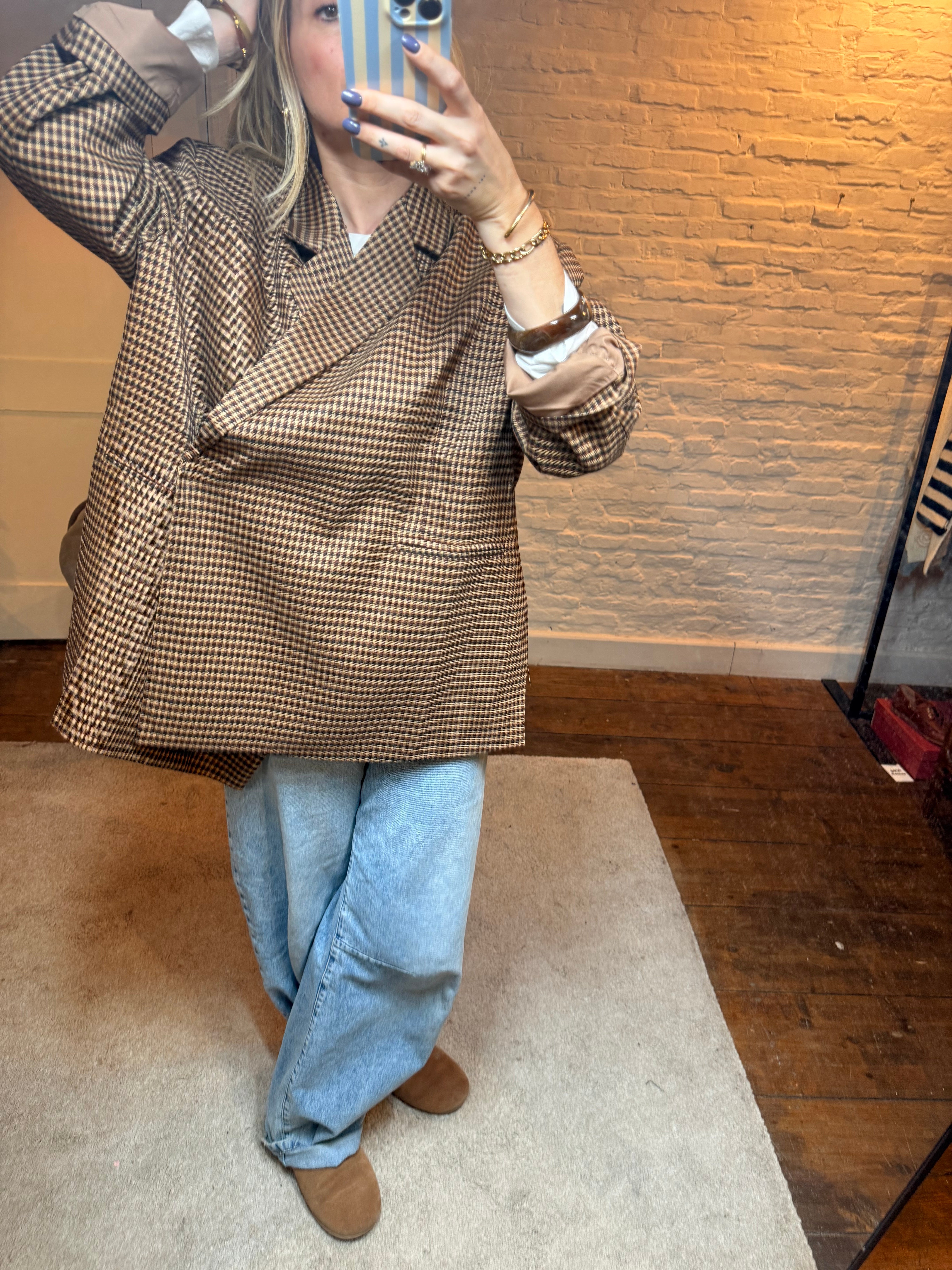 De blazer is taille unique en tailleert ruim, waardoor hij mooi oversized valt en geschikt is voor verschillende lichaamsvormen. Perfect om te dragen over een basic top, knit of jurk voor een instant stijlvolle upgrade.