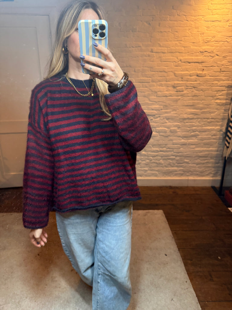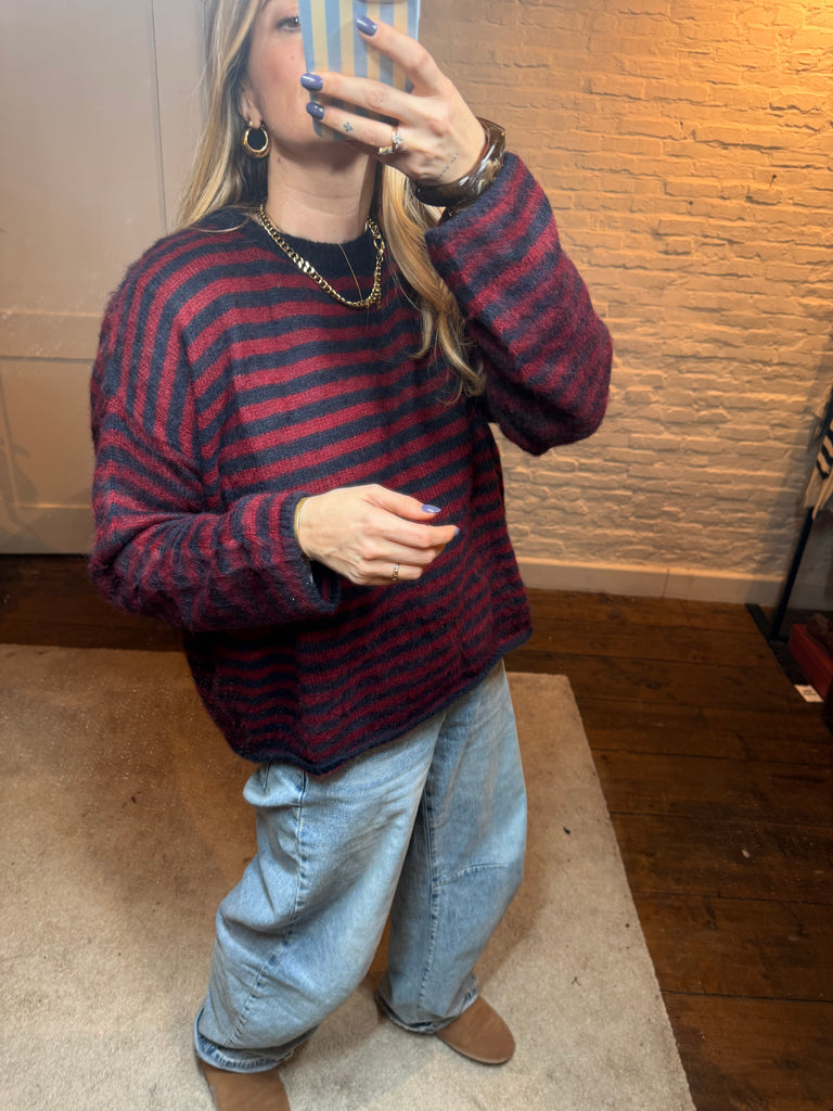 Sam wollen trui - bordeaux/blauw