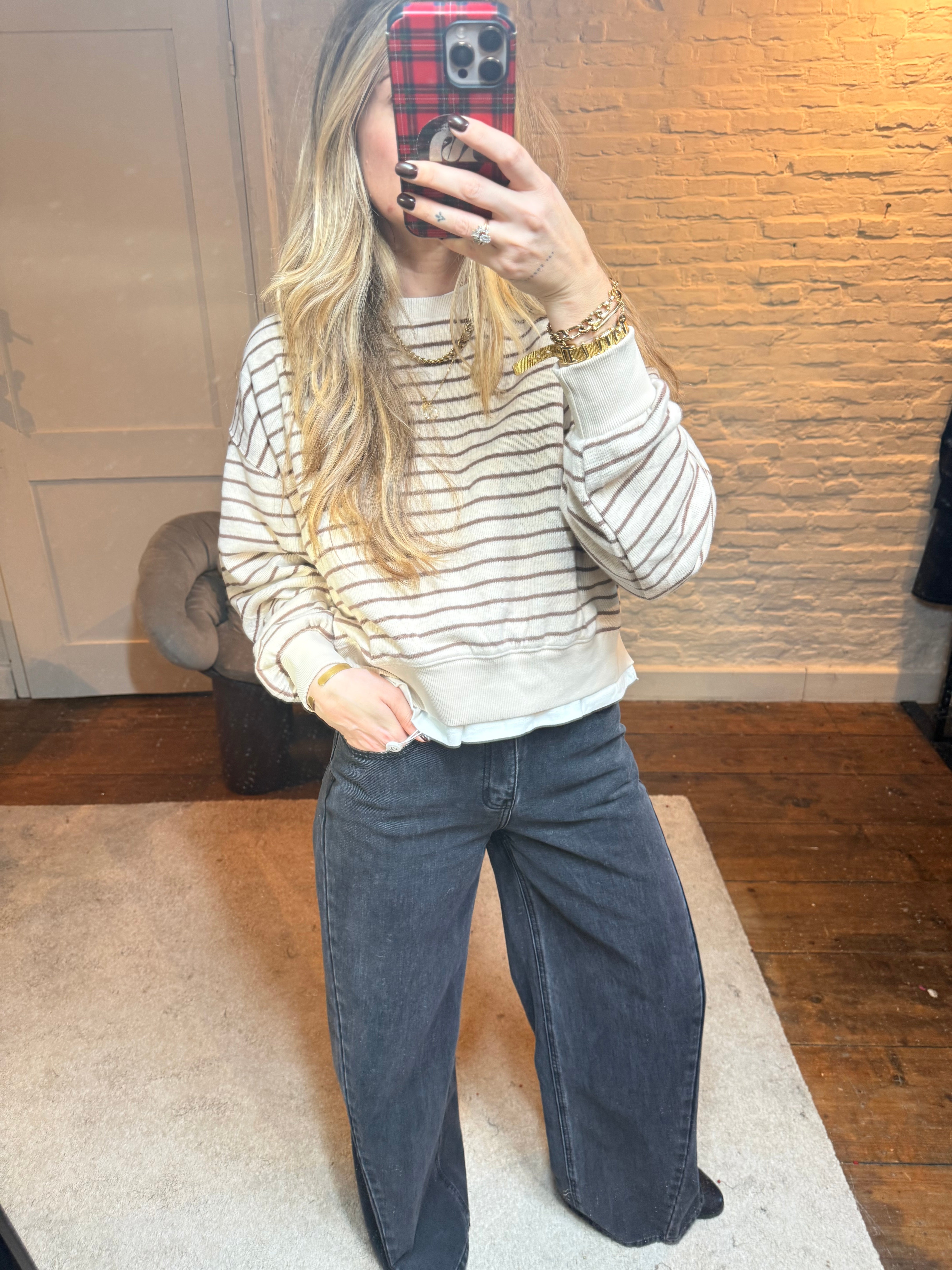 strepen sweater - bruin