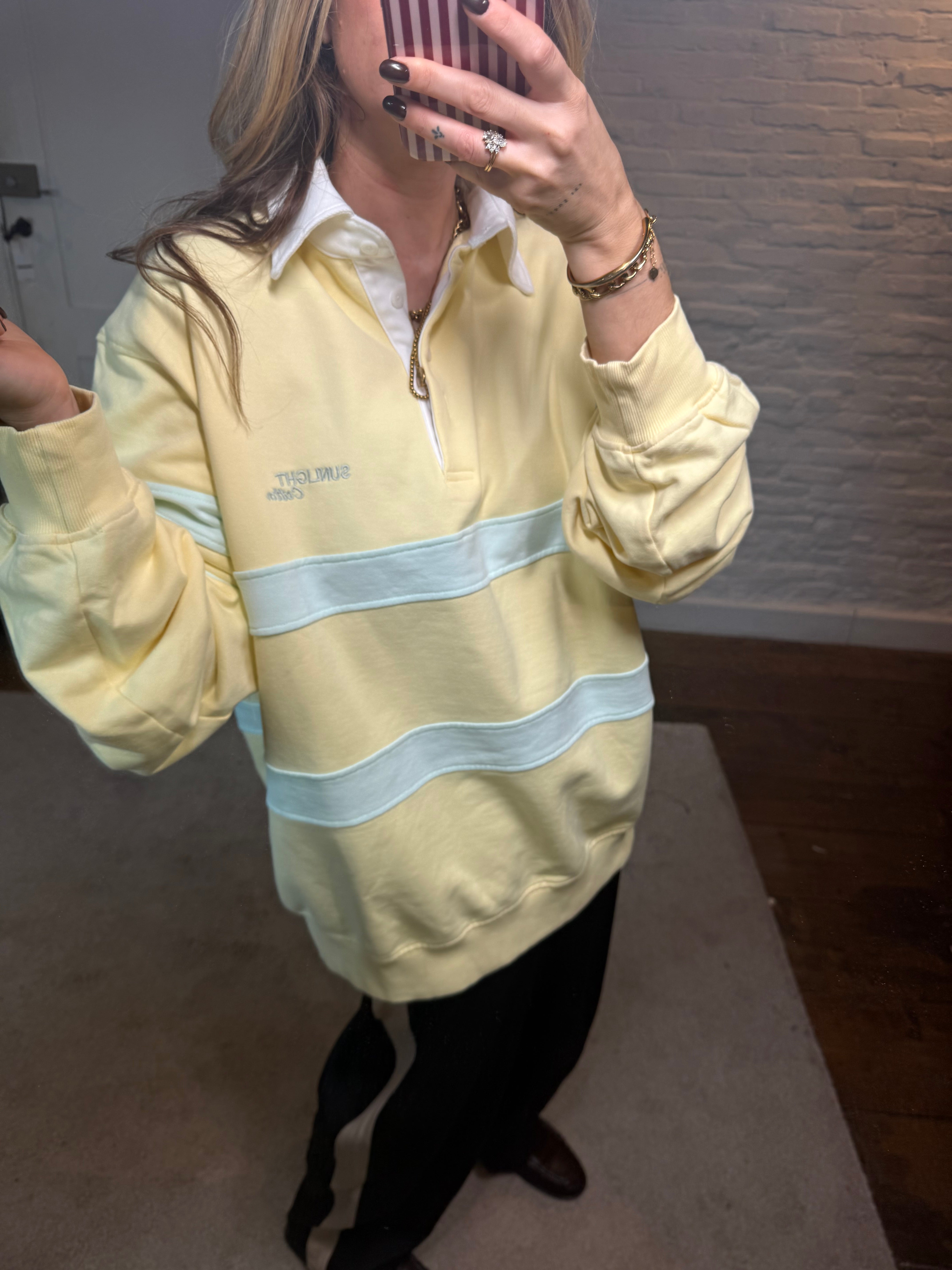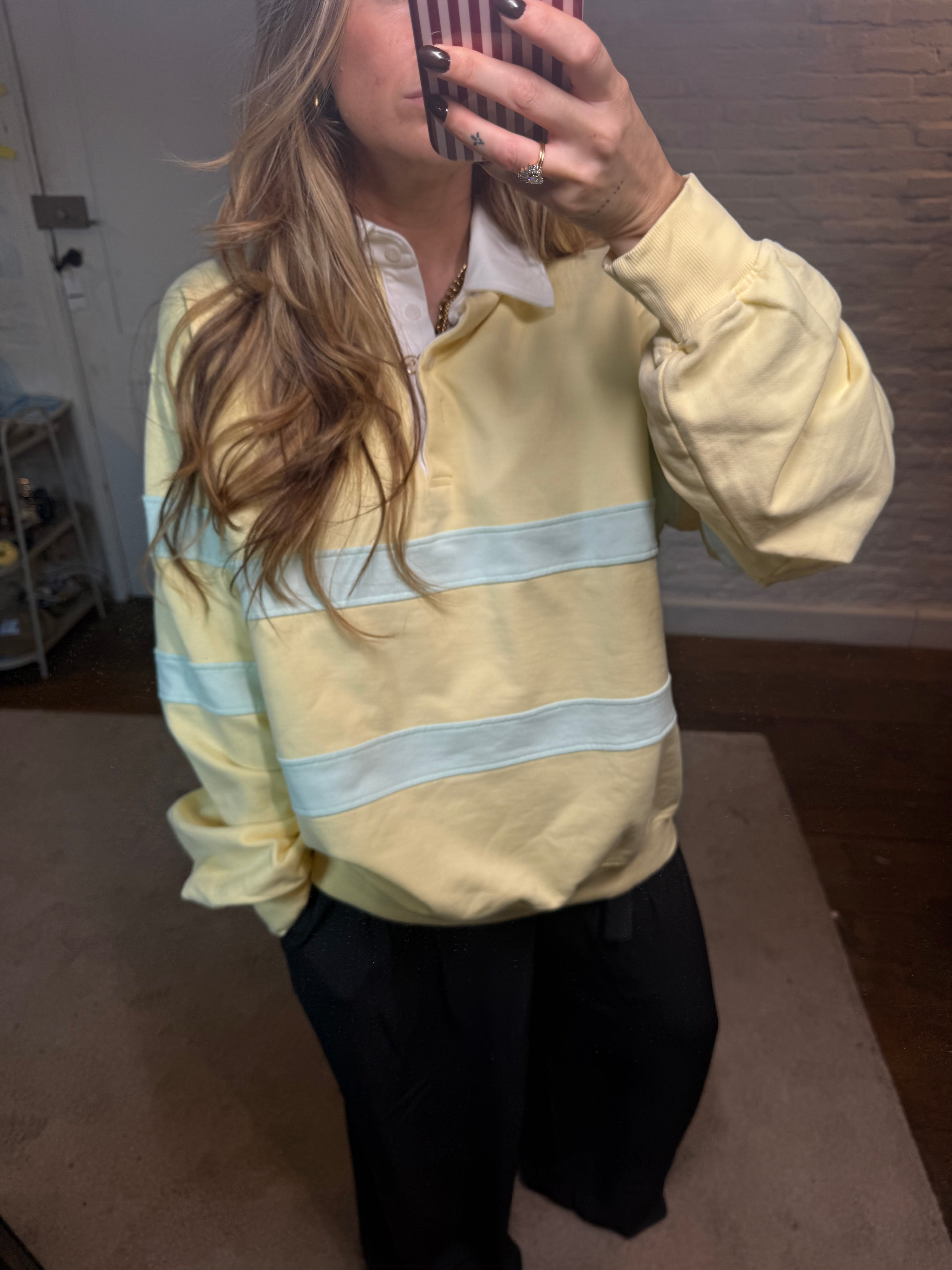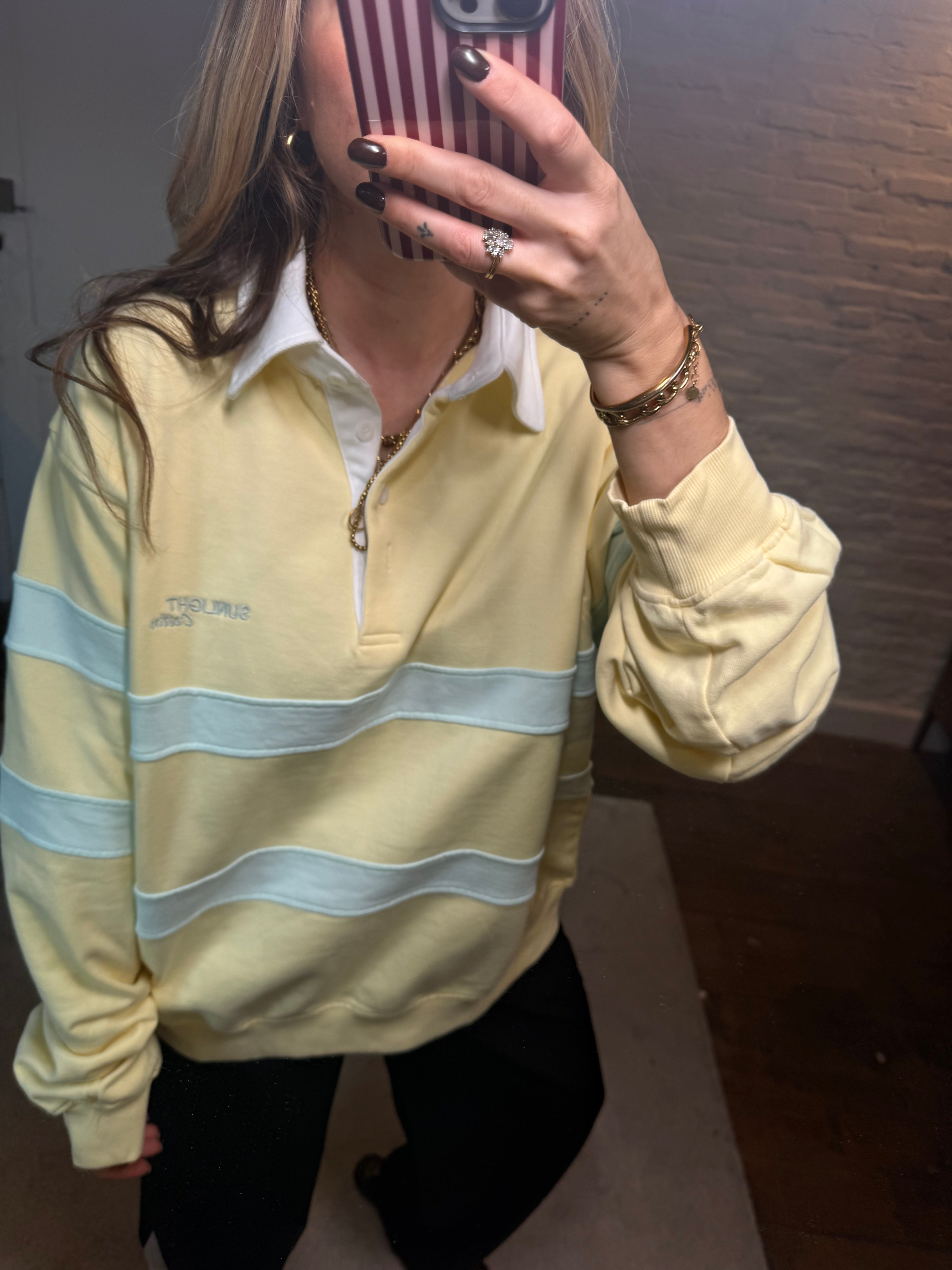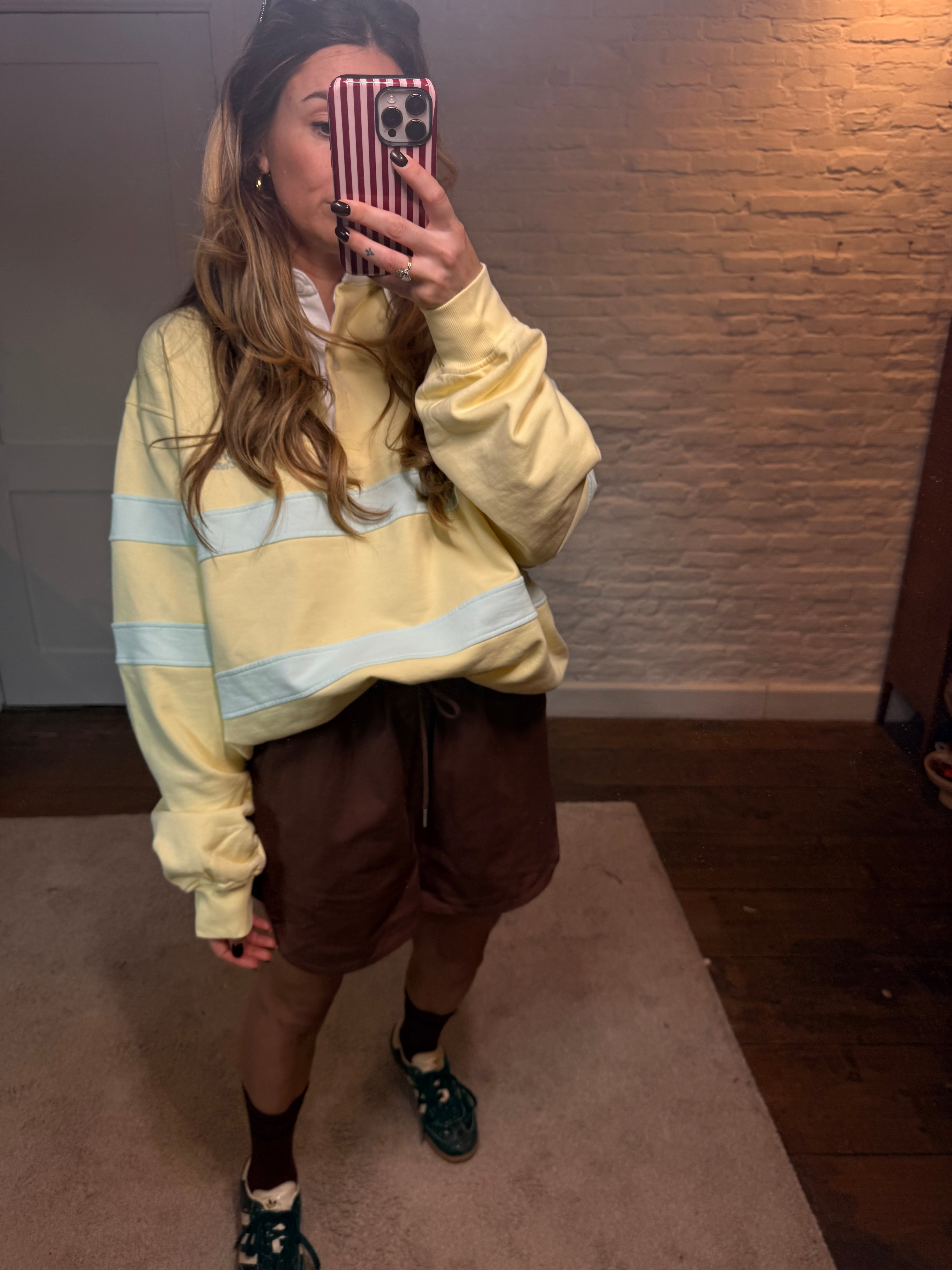 Deze vintagelook polo trui geeft je outfit meteen een coole, retro touch. De polo kraag zorgt voor een tijdloze uitstraling, terwijl de oversized fit het geheel een moderne, relaxte vibe geeft.